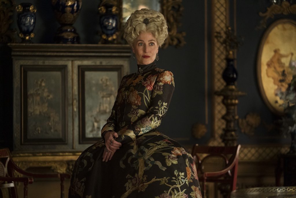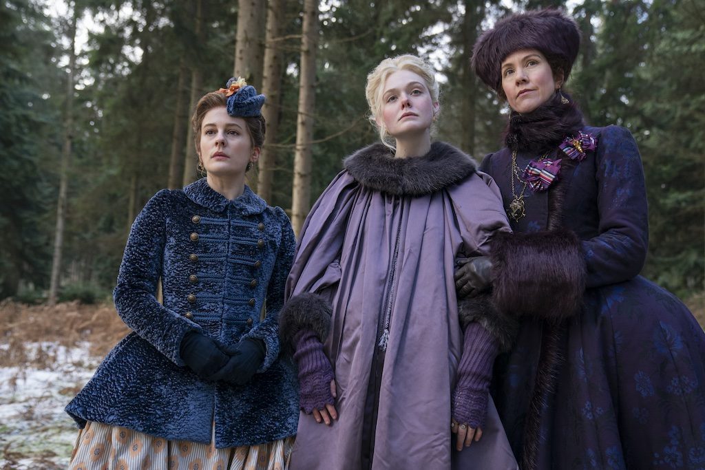 The Great -- Episode 201 -- In season two of “The Great,” Catherine finally takes the Russian throne for her own — but if she thought coup-ing her husband was difficult, it’s nothing compared to the realities of ‘liberating' a country that doesn’t want to be. Velementov (Douglas Hodge), Catherine (Elle Fanning), Orlo (Sacha Dhawan), shown. (Photo by: Gareth Gatrell/Hulu)