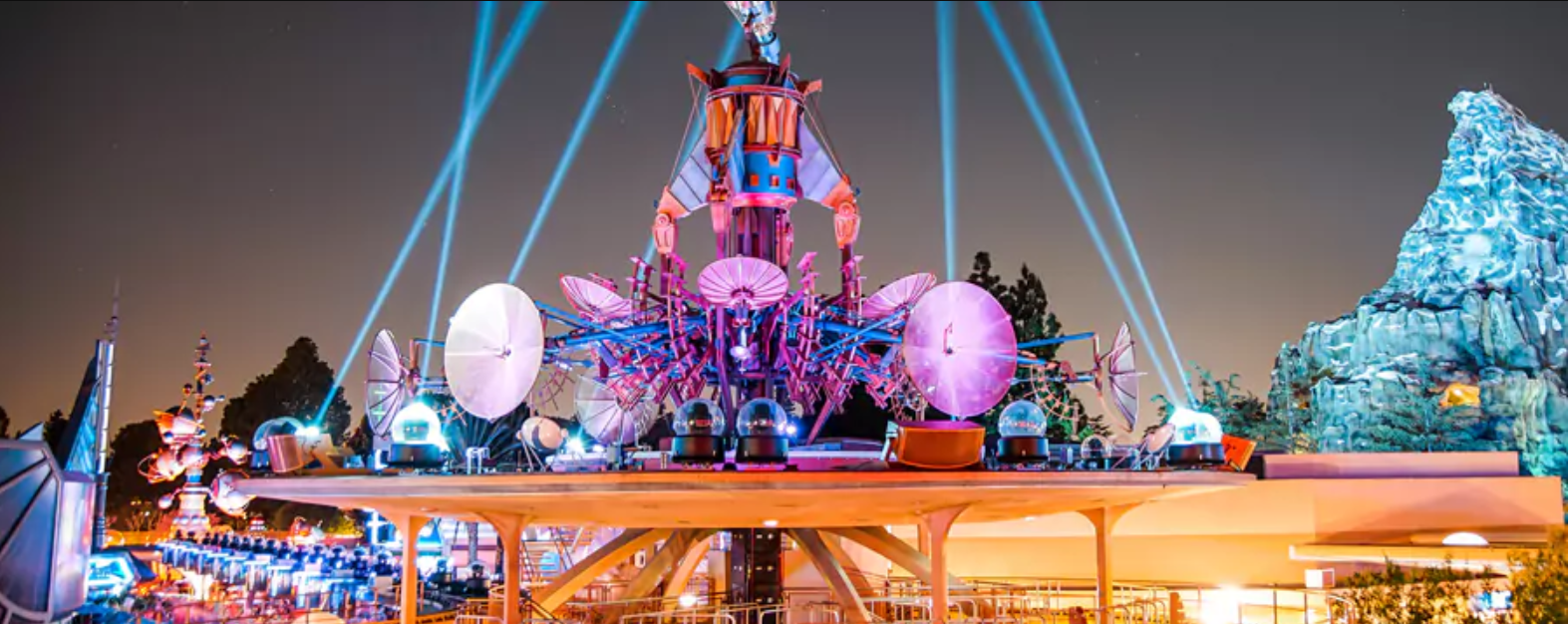 Home to such out-of-this-world attractions as Space Mountain and Star Tours - The Adventure Continues, Tomorrowland is where the science fiction meets an optomistic vision of the future. "Googie" architecture (the space age look popular during the 1950s) first appeared in Tomorrowland in 1959.