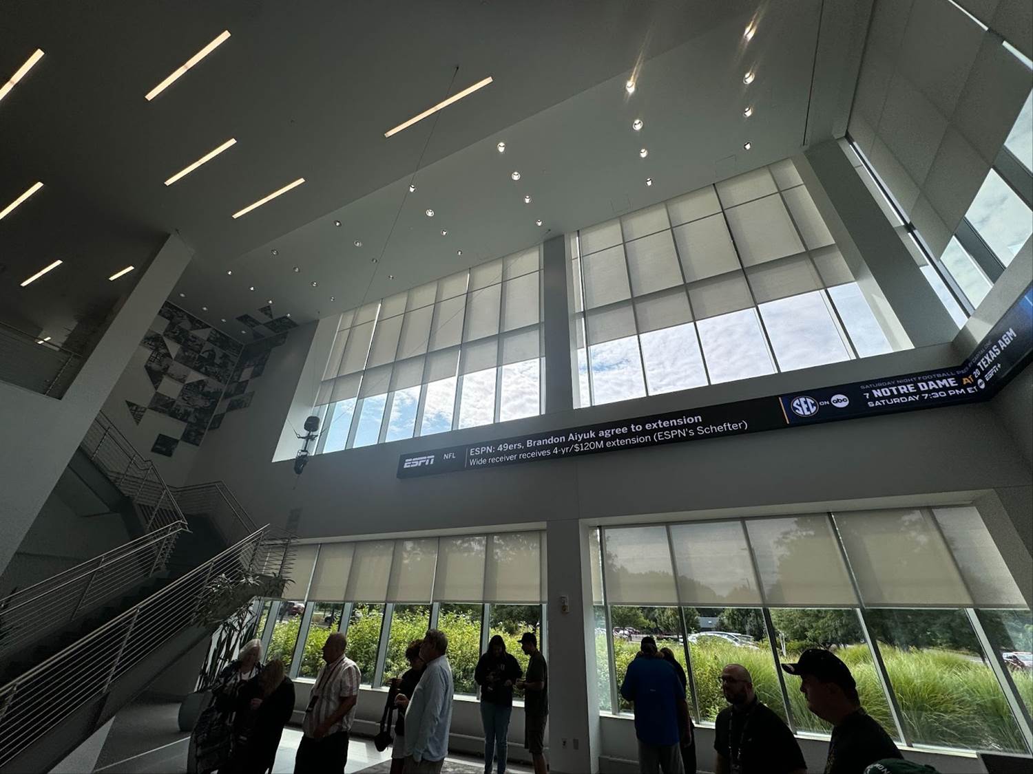 As a long-time ESPN viewer, you would sometimes hear stories about how the headquarters were in the middle of nowhere. I had thought that those tales were an exaggeration or that the area around the worldwide leader would be built-up by now. But, despite ESPN’s growth, it still feels like it is in a sleepy town. As our bus pulled in, it really hit home that we were at the home of such an iconic institution. We disembarked the bus and were split into two groups which were each led by a tour guide who works at ESPN with a “real job." For example, our fantastic guide works in audio and has been with the company for 27 years. While being a tour guide is not her full-time job, she was an excellent storyteller and told many stories of her experiences through the years as well as the history of the company.