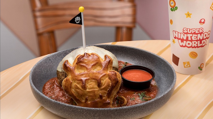 - Bowser’s Fireball Challenge (Toadstool Cafe) – step up to this challenge featuring a towering one-pound meatball topped with gooey mozzarella cheese in rich mushroom marinara sauce and fresh parsley served with a Bowser-inspired puff pastry and a side of hot sauce