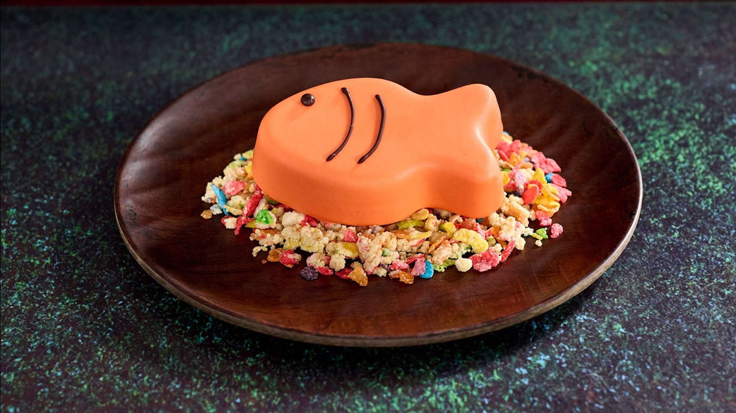 - Stormfly’s Catch of the Day (Mead Hall) – a fun dessert perfect for young Vikings featuring a chocolate mousse fish nestled atop a bed of colorful crispy rice cereal for a delightful combination of creamy and crunchy sweetness