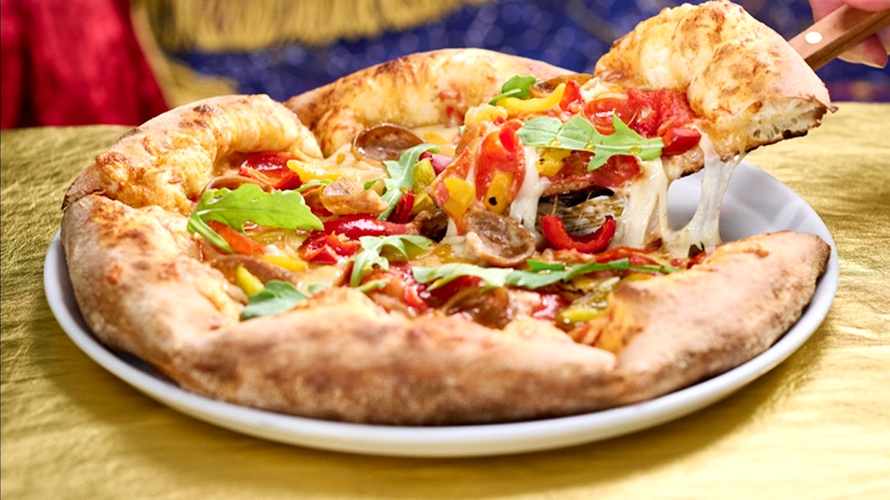 - Harvest Moon Pizza (VG) (Pizza Moon) – this vegan masterpiece features rich tomato sauce adorned with grilled artichoke hearts, Divina tomatoes and roasted peppers, topped with Castelvetrano olives and arugula for a crisp finish