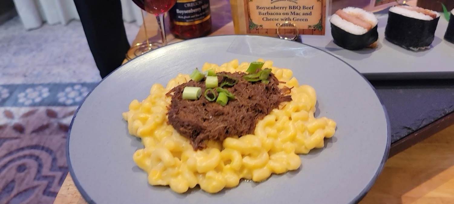 At the event, our items were presented buffet style along with plated displays for photographs. The Peach and Cheese Burrata Caprese Salad with a Boysenberry Dressing is available at the Gold Mine Trail Booth near GhostRider. The peaches and tomatoes paired well with the creamy burrata while the Boysenberry dressing added a bit of tang.