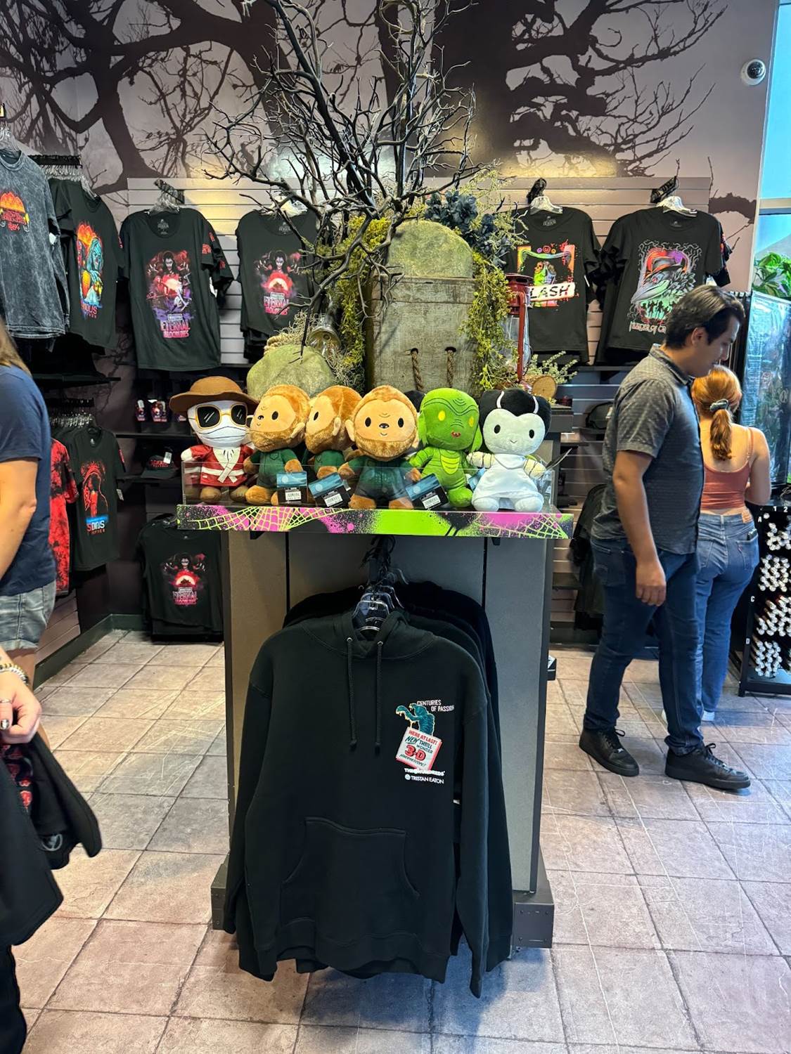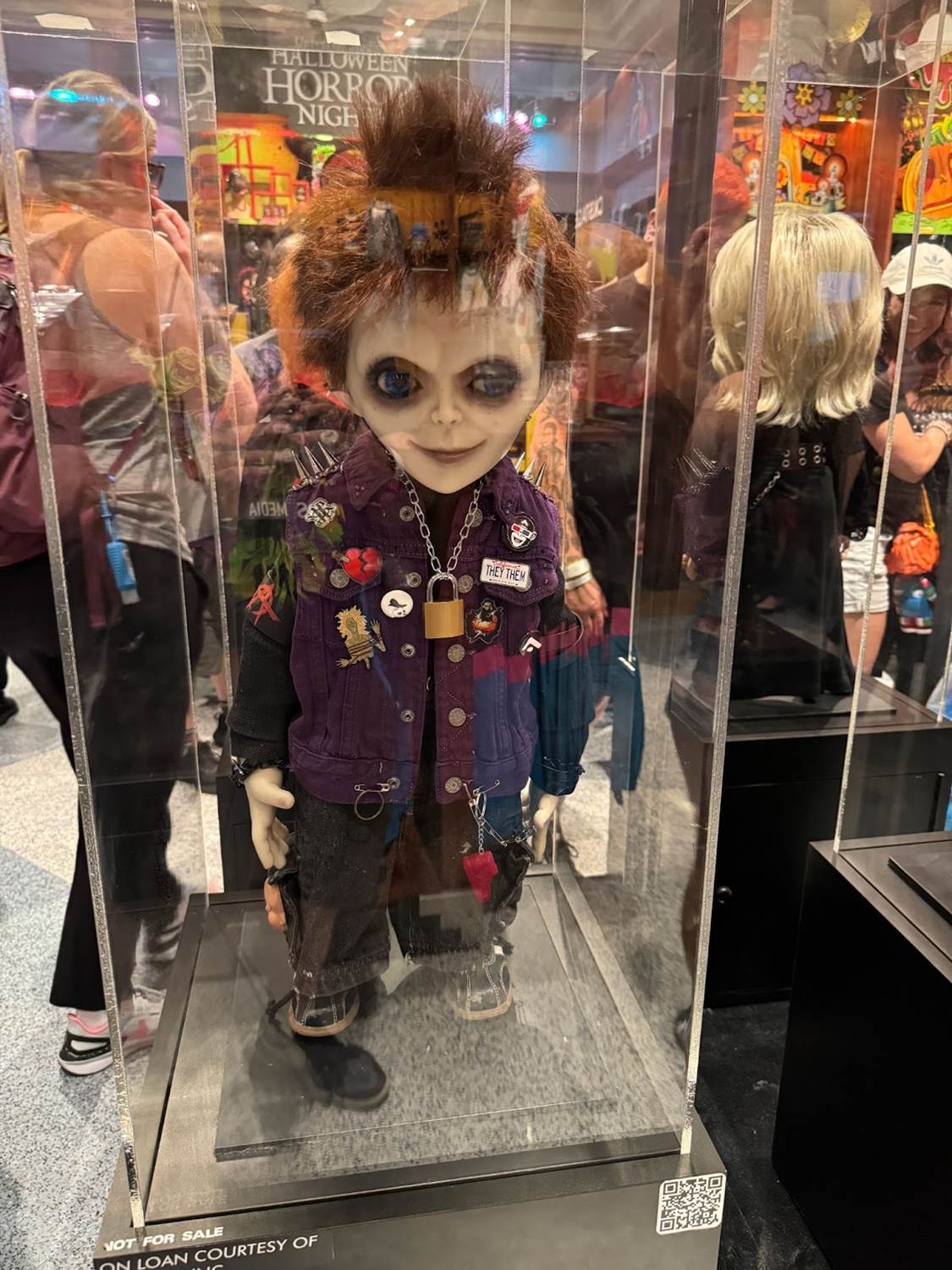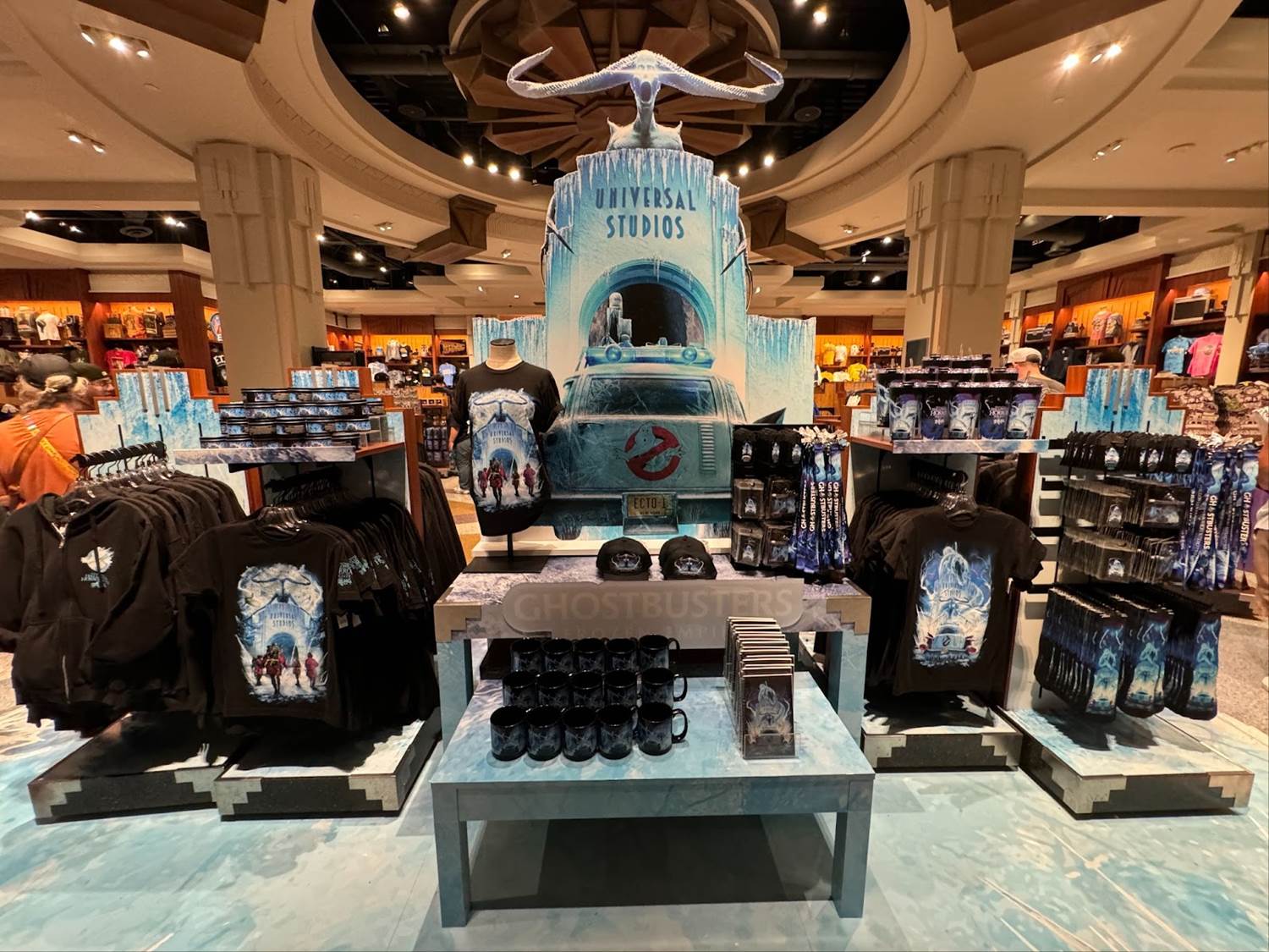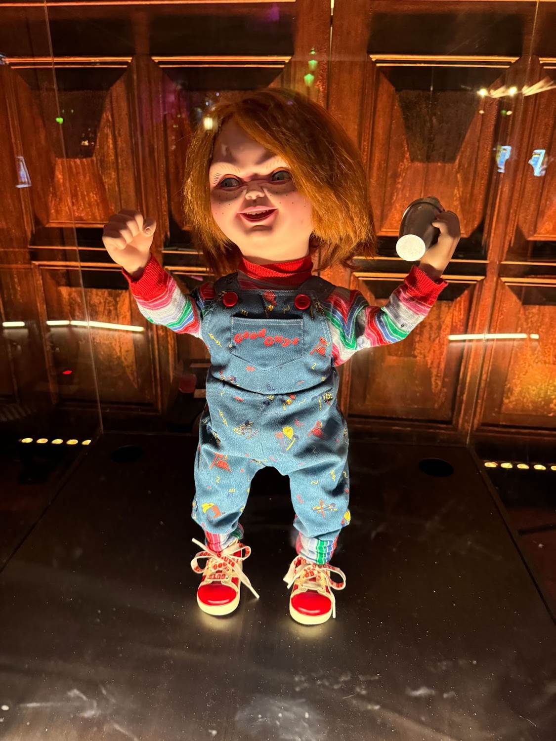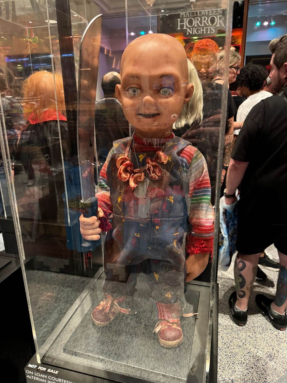 Before we left, we wanted to check out some more of this year’s Halloween Horror Nights merchandise, including the big displays for Ghostbusters: Frozen Empire. Plus there were some very cool and familiar-looking dolls from Peacock’s Chucky on display as well.