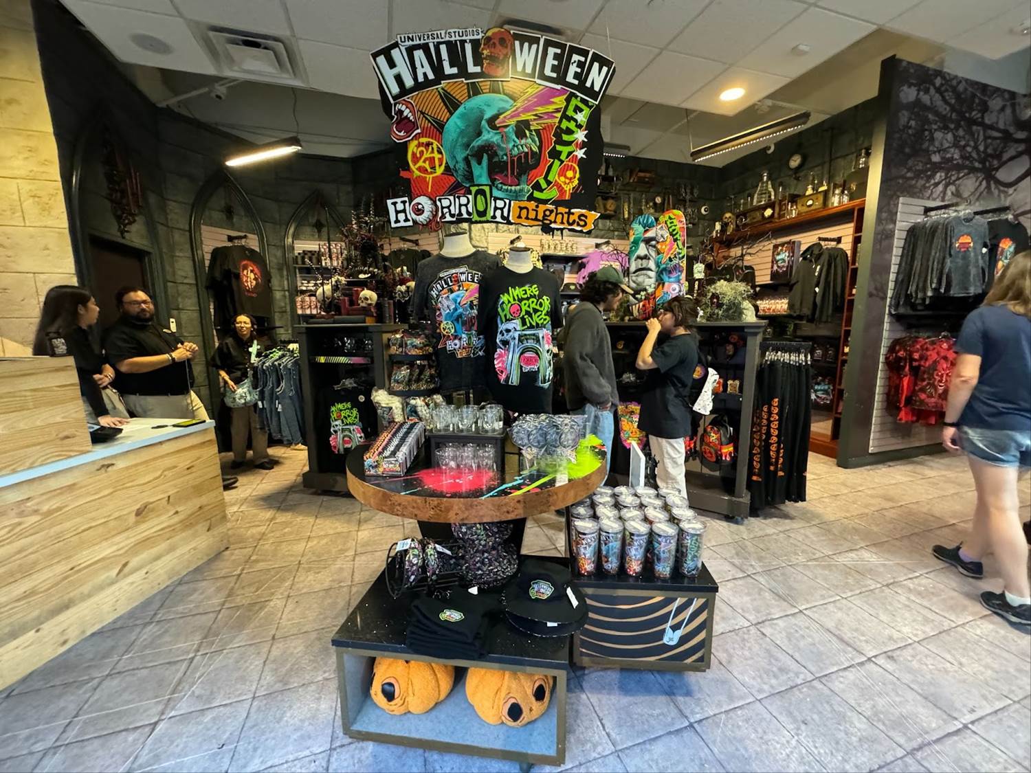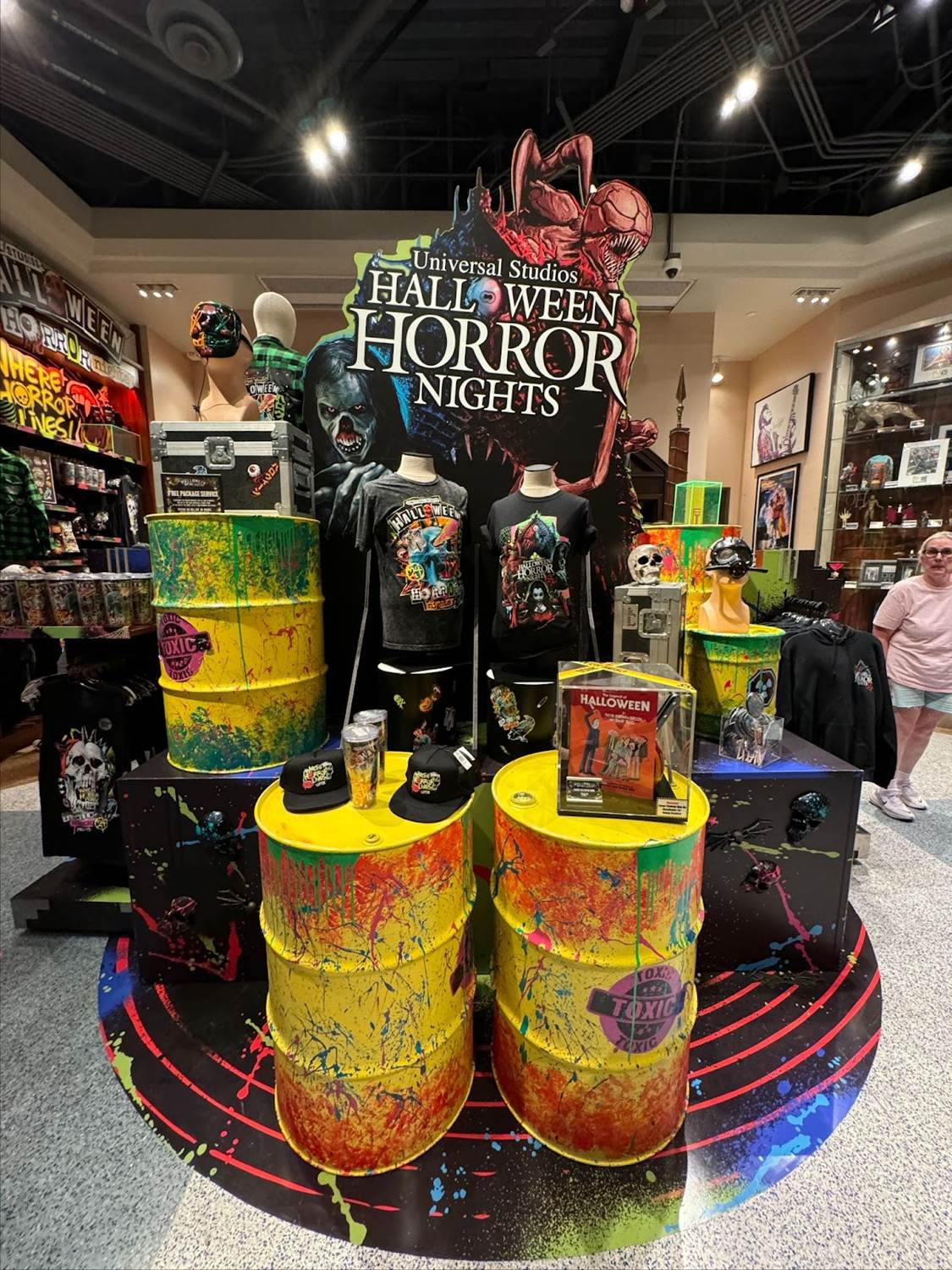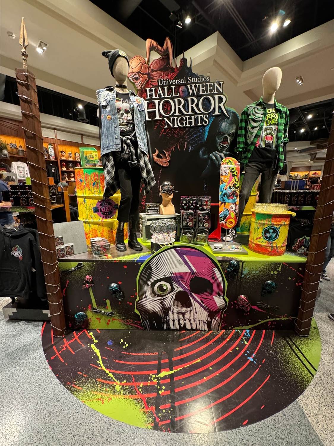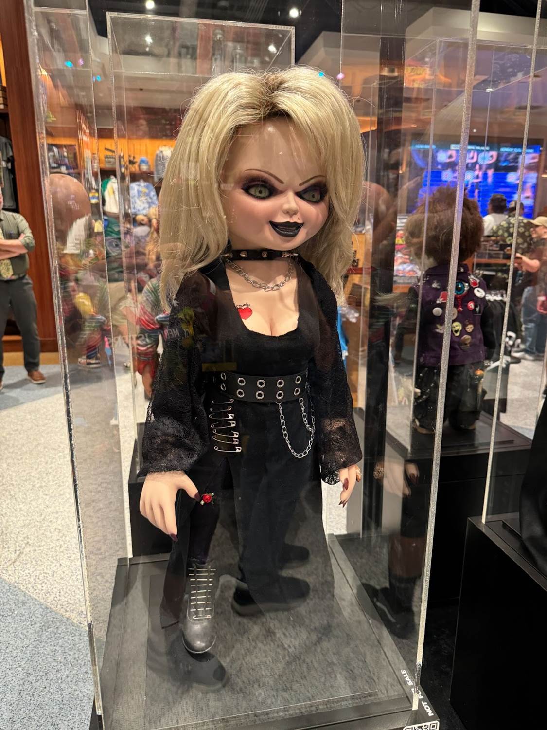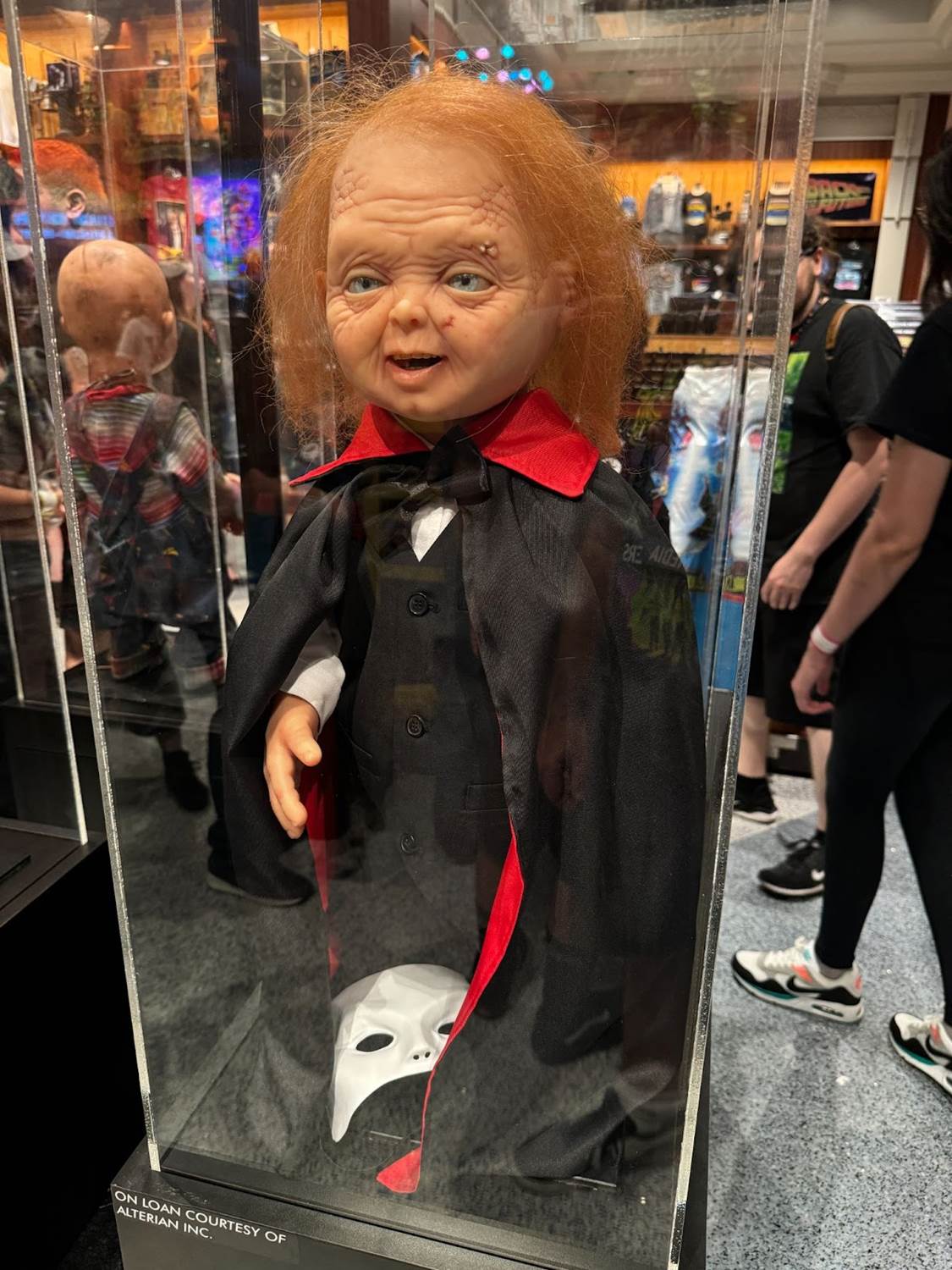 Before we left, we wanted to check out some more of this year’s Halloween Horror Nights merchandise, including the big displays for Ghostbusters: Frozen Empire. Plus there were some very cool and familiar-looking dolls from Peacock’s Chucky on display as well.