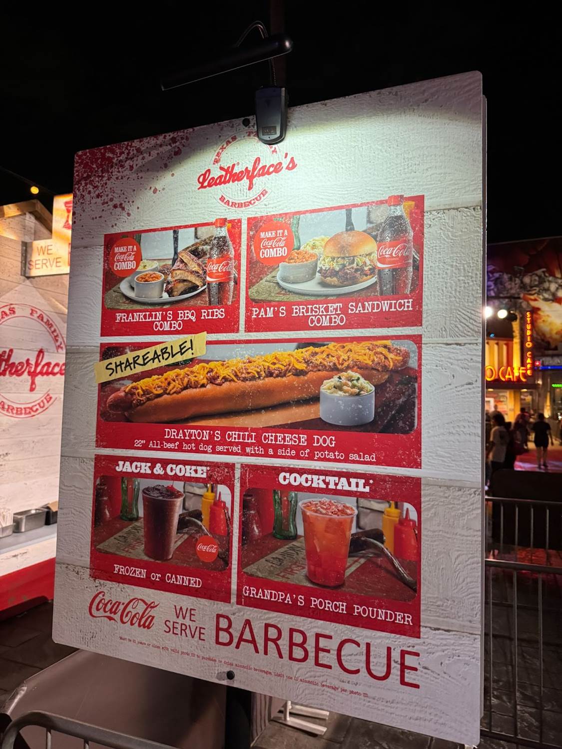 As for unique food and beverage options for this year’s Halloween Horror Nights, both Chuck and The Weeknd have their own bars, and Leatherface from The Texas Chainsaw Massacre has– what else?-- a barbecue joint on the Lower Lot near his haunted house.