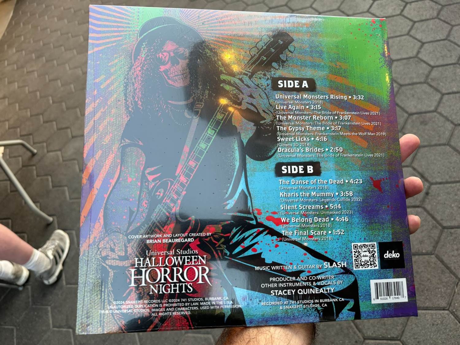 I couldn’t resist picking up the vinyl record soundtrack of Guns N’ Roses guitarist Slash’s scores from some well-received Horror Nights houses over the past decade or so. I’m glad to have this record for my Halloween-time enjoyment even though it was a bit pricey at $60 plus tax.