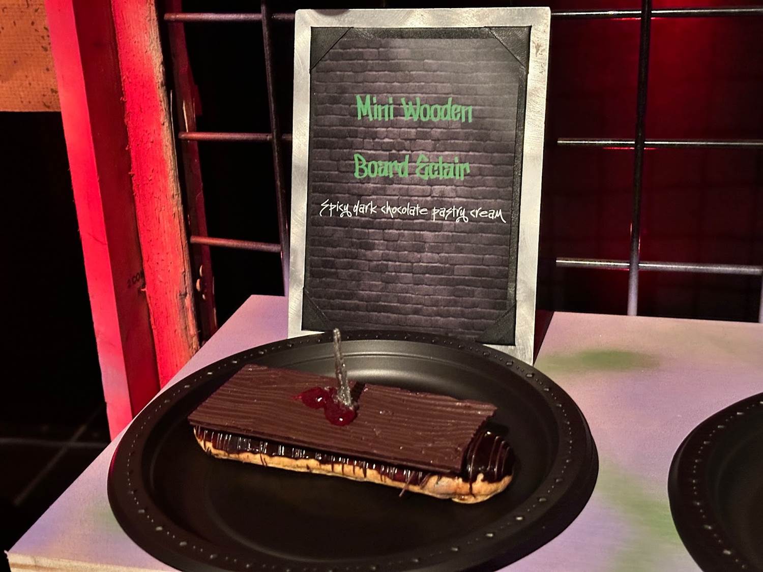 - Mini Wooden Board Eclair – spicy dark chocolate pastry cream
