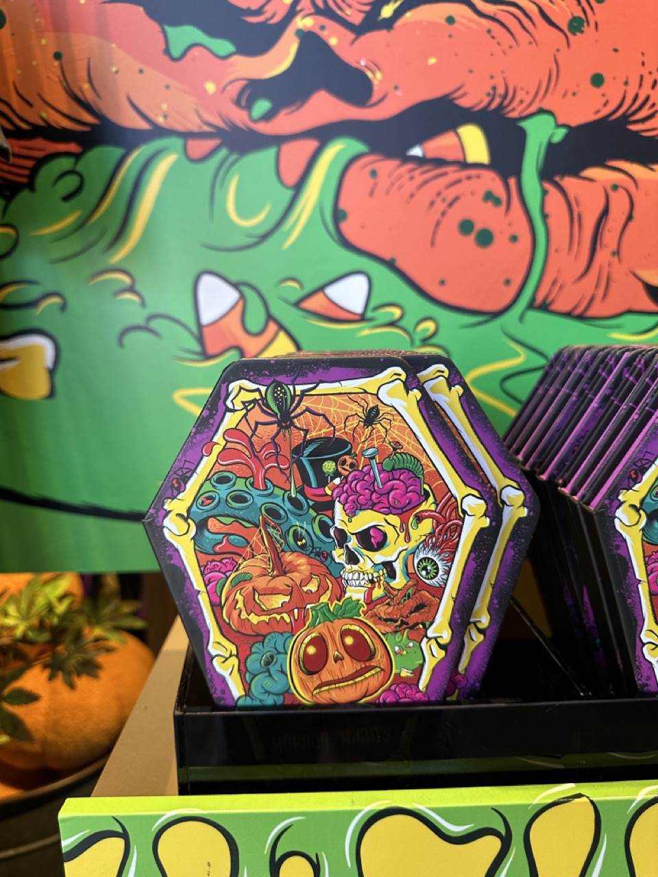 A punk-styled skeleton features on many items, from an event T-Shirt to ornaments and even some snacks. This year’s tagline, “Where Horror Lives" also features.