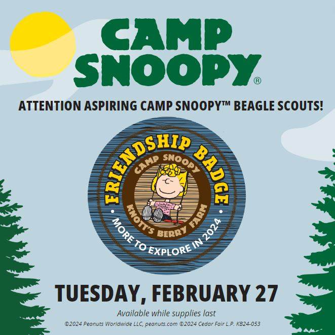- Knott’s Berry Farm has revealed the second friendship badge that guests can get their hands on as we get closer to the opening of the reimagined Camp Snoopy at the park later this year.