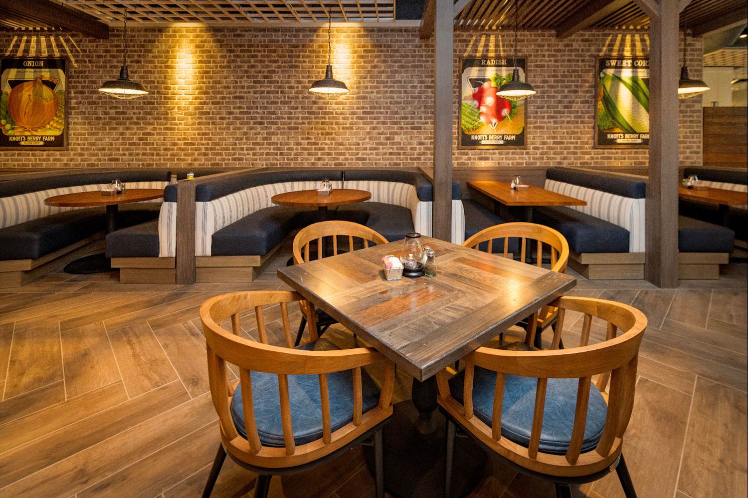 - Thirty Acres Kitchen, the new full-service hotel restaurant, offers farm-inspired delights and classic American cuisine. Paying homage to the original 30 acres of the Knott's farm and Cordelia Knott's culinary finesse, the restaurant promises seasonal menu items to complement the park's themed areas, festivals and events as well as an expanded outdoor dining veranda. A spacious double-sided wrap-around bar seamlessly extends the down-home charm into the lobby. Here, guests can enjoy locally inspired craft cocktails and small plates, surrounded by the cozy and eclectic ambiance that defines the Knott's Hotel experience.