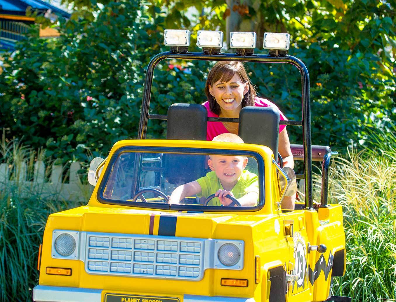 A retheme of Rocky Mountain Trucking company, Off-Road Rally will allow kids to jump into their own PEANUTS character themed jeep. The track and terrain of the older attraction have been expanded to enhance the attraction.
