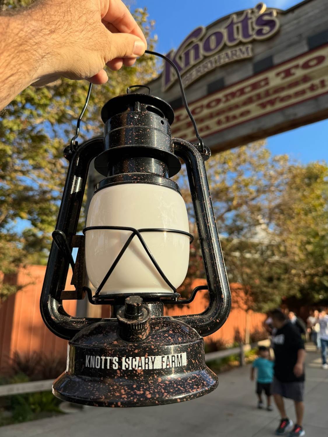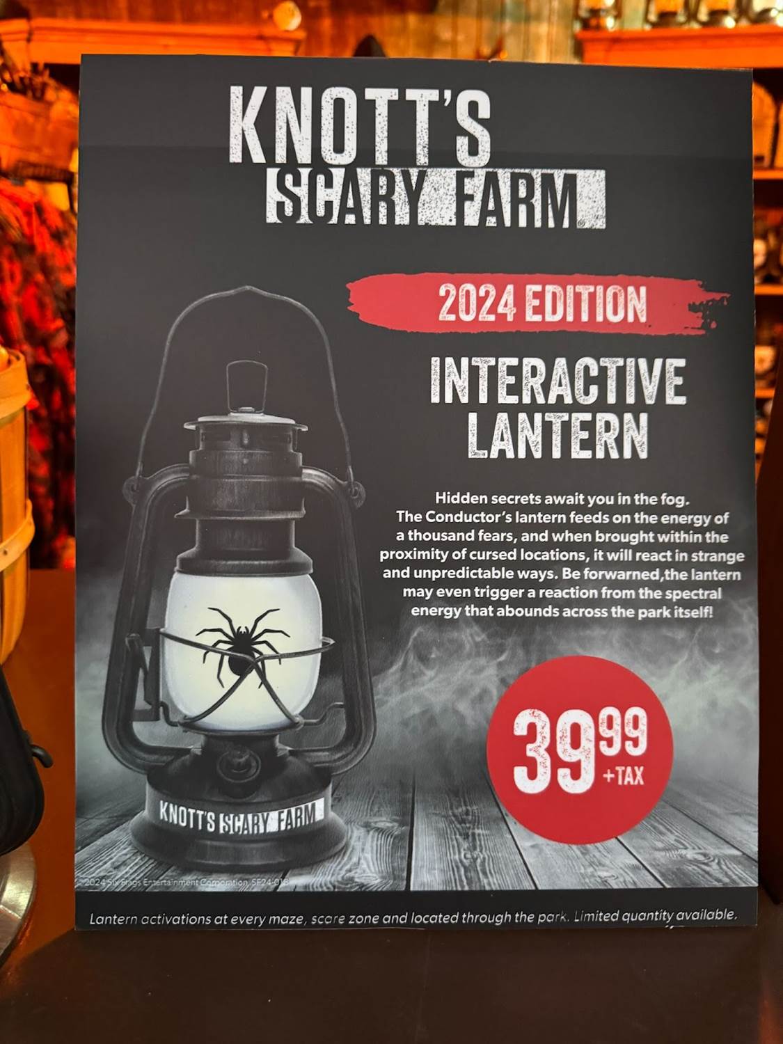 Some of the fun merchandise available around Knott’s Scary Farm this year includes a cat-shaped light-up “No Boo" necklace, the second generation of the park’s Interactive Lantern, and a variety of apparel themed to the event.