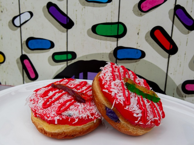 Located in CityWalk, the fan-favorite donut shop is offering a Coconut Pandan donut. Embracing the tropical and savory-sweet flavor of the pandan plant found throughout Southeast Asia, the treat is filled with ube-flavored filling and topped with green tea velvet icing, toasted coconut shavings and snake gummies.