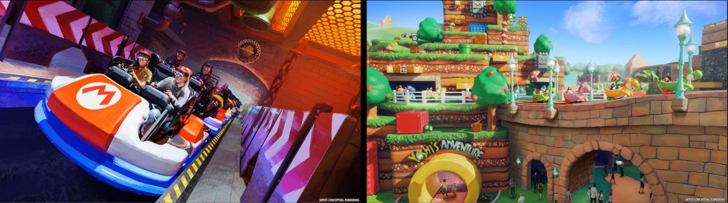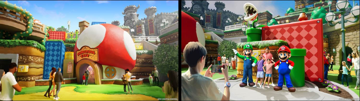 - Developed in partnership between the visionaries of Universal Creative and Nintendo, the vibrant land combines iconic Nintendo characters with Universal’s renowned craft of creating innovative theme park experiences to deliver a multi-sensory environment where guests can experience the fun and adventure of Nintendo games in a whole new way.
