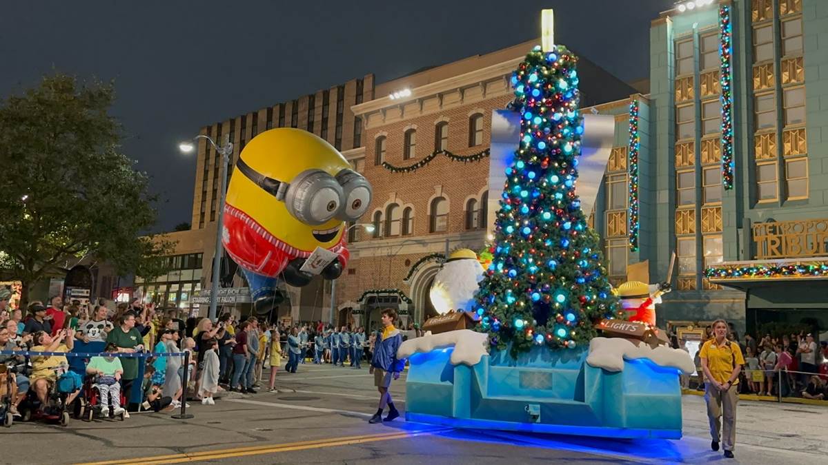 - These beloved stories come to life as larger-than-life balloons, colorful holiday floats and hundreds of jolly performers embark on a picturesque journey that culminates in a stunning finale including a special appearance by Santa Claus and the lighting of the magnificent 80-foot Christmas tree.