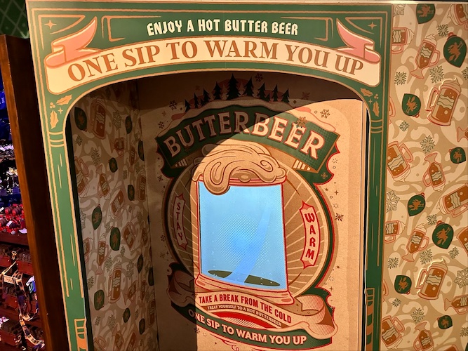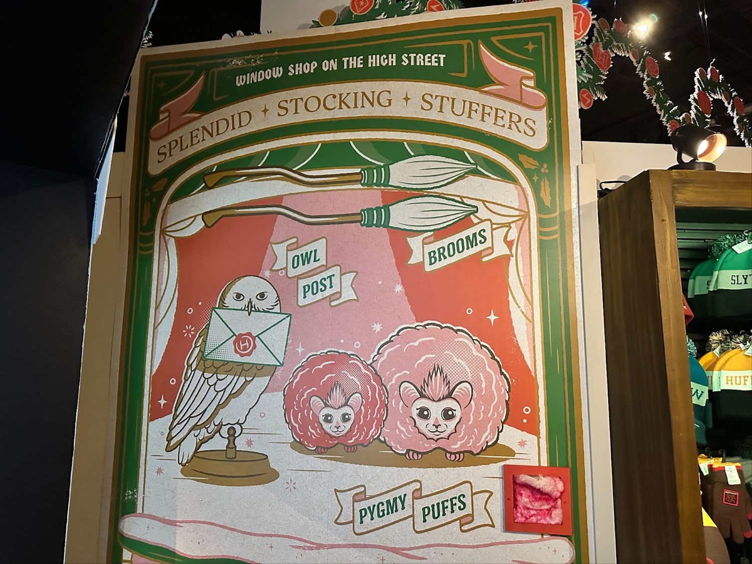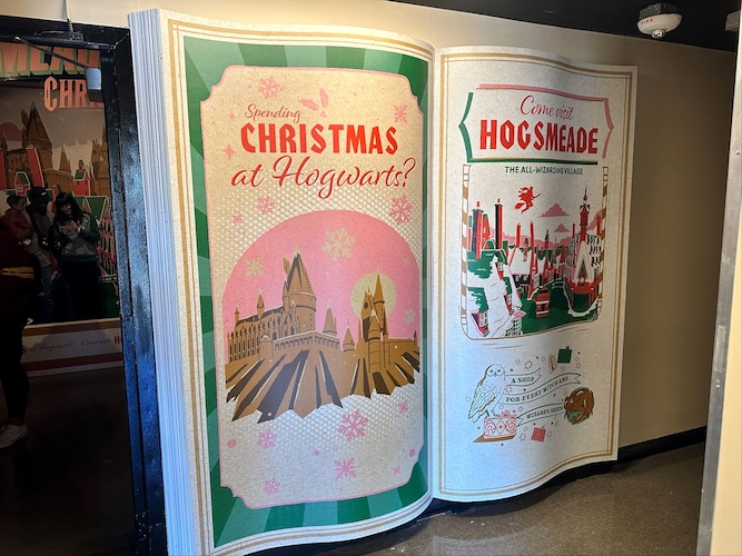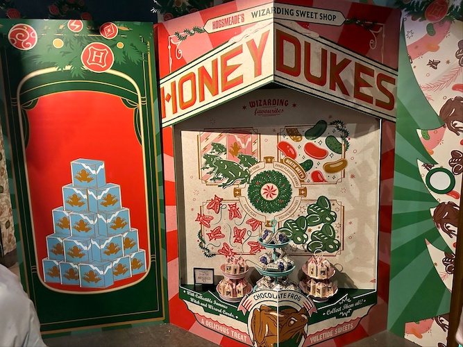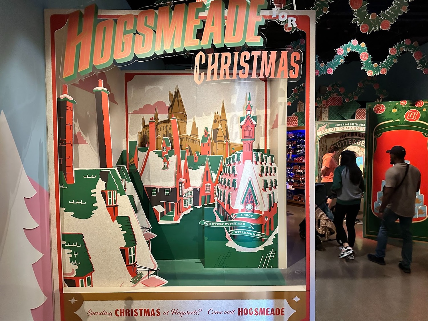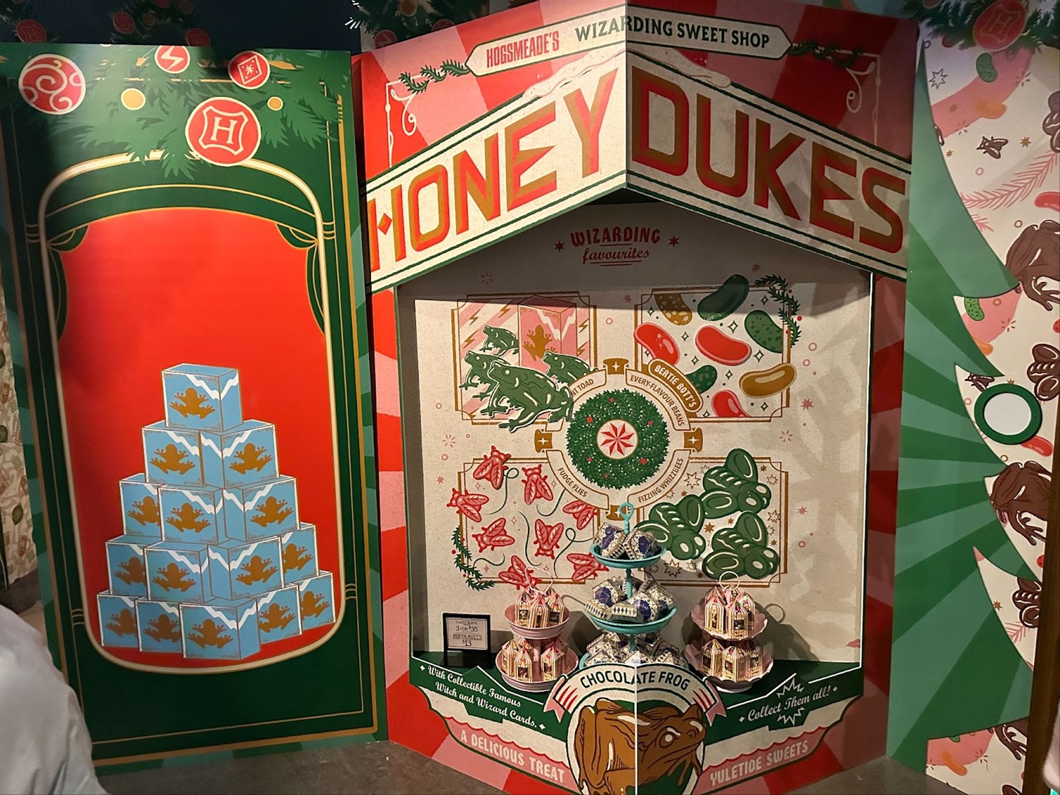 Entering into the experience, embrace the magic of the holidays in the Wizarding World with the Hogsmeade Christmas section of the store. Through a series of pop-up photo ops and Christmas decorations, step inside the pages of a cozy Christmas perfect for a witch or wizard. Remember to keep your eyes peeled for any of the interactive shapes.