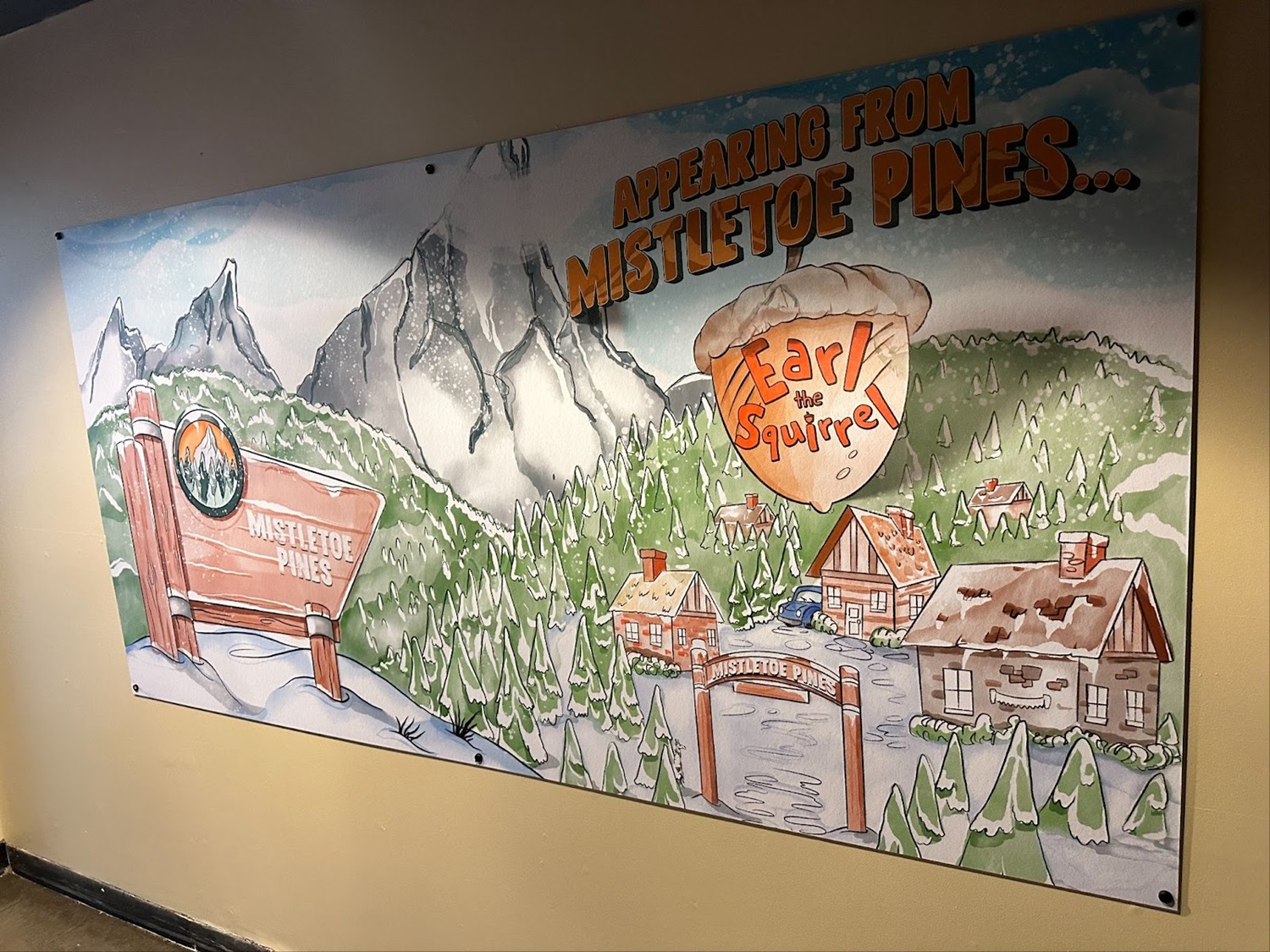 Universal Orlando Resort’s beloved Earl the Squirrel is the subject of our next pop-up adventure. The Christmas critter from the village of Mistletoe Pines has become a beloved icon for the holiday season at Universal Orlando Resort. His love for Christmas Trees encouraged him to venture away from home when his favorite tree was chopped down. Stowing away on the tree, Earl woke up to find himself at Universal where he now returns every year to enjoy the holiday festivities.