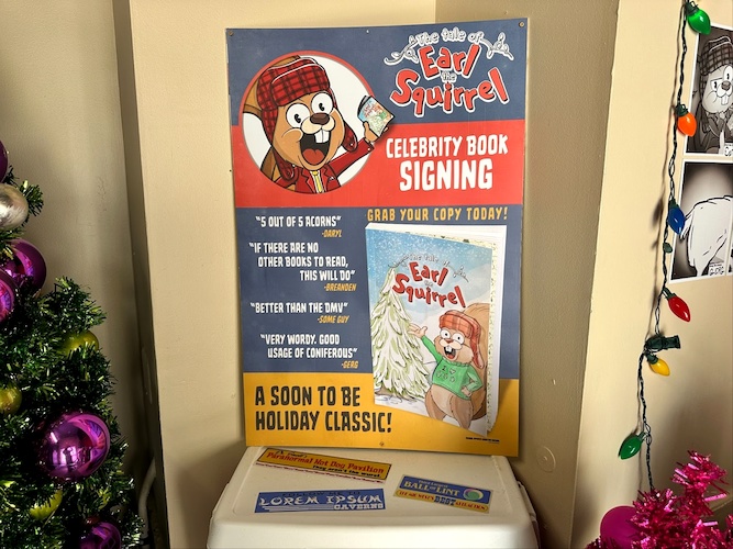 Earl the Squirrel is also preparing for a book signing at the pop-up. Showcasing some of his other adventures including sagas with his friend Gerg the Llama, the display is a fun nod to the original characters.