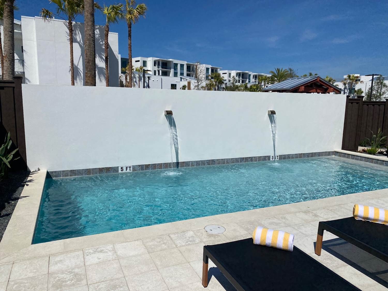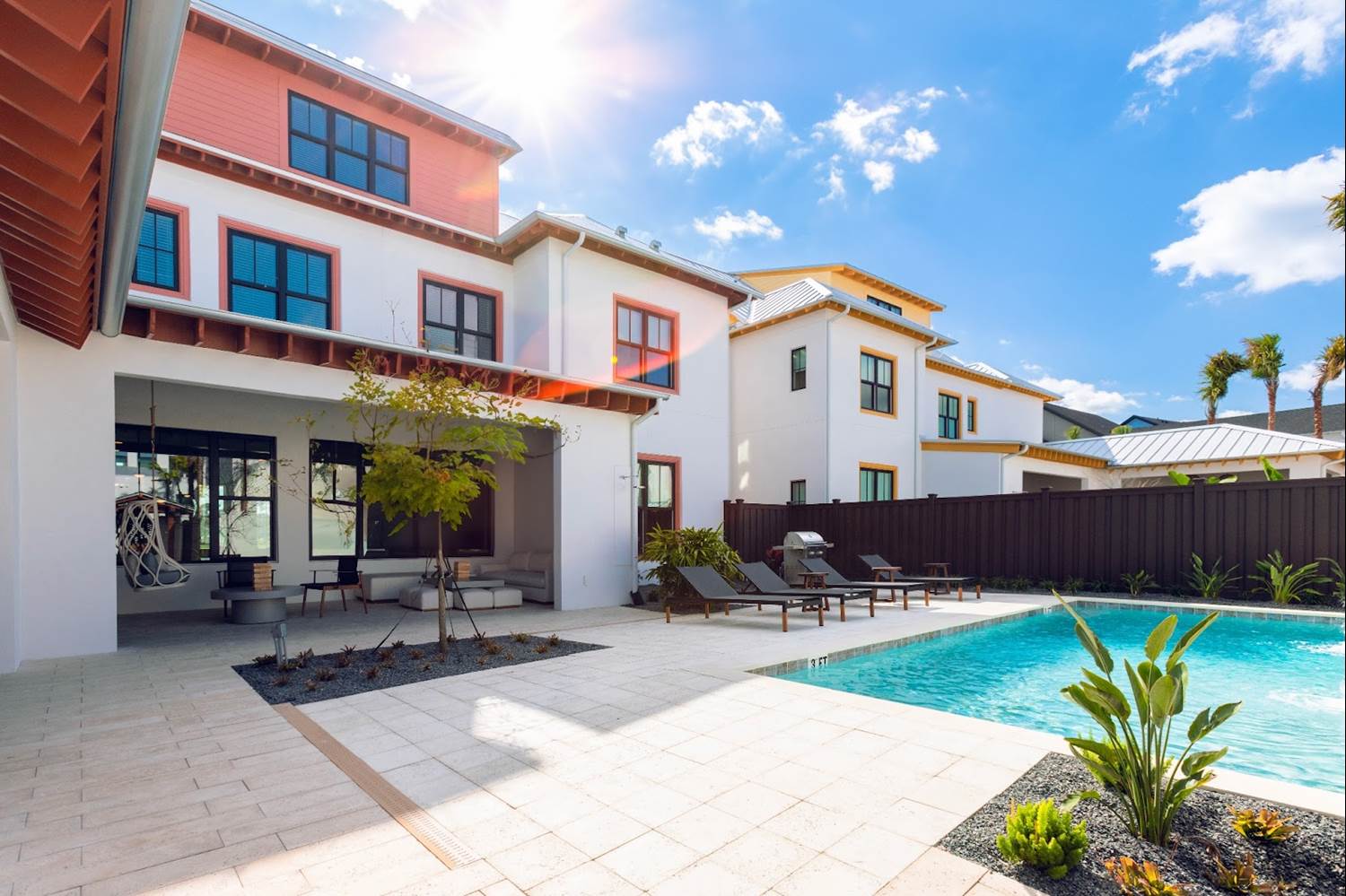 Each house features its own pool and a spacious backyard, with plenty of lounging options.