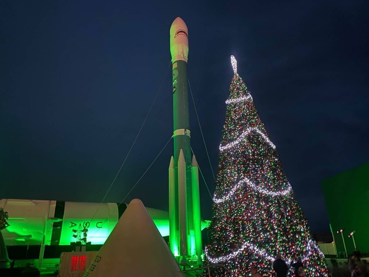The main 50-foot tall Christmas tree for the event can be found just outside of Gateway: The Deep Space Launch Complex.