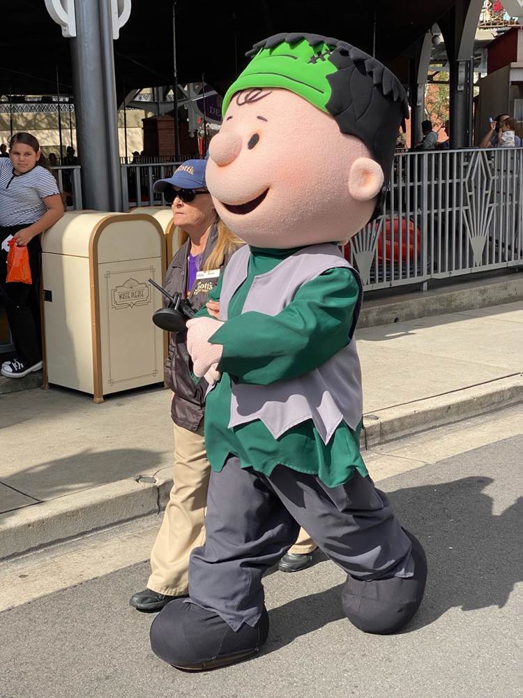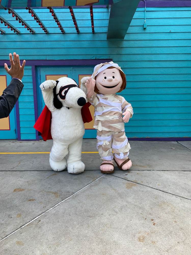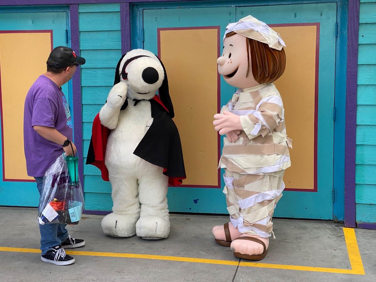 And the Peanuts gang– including Snoopy, Peppermint Patty, and Charlie Brown himself, as pictured below– do pop up around the park to meet with their fans.