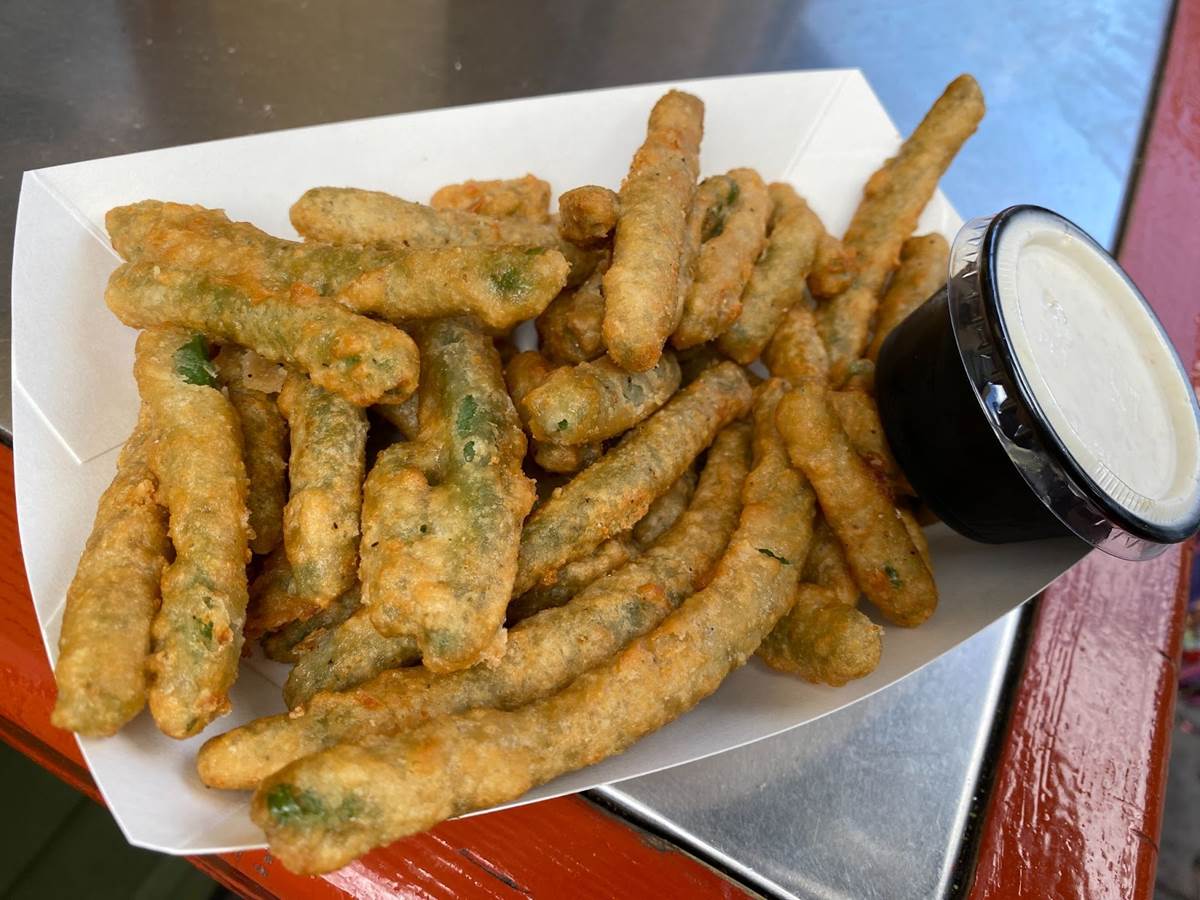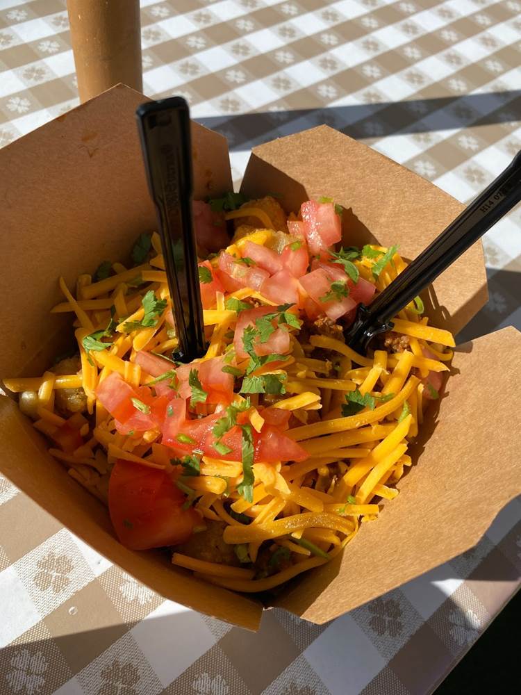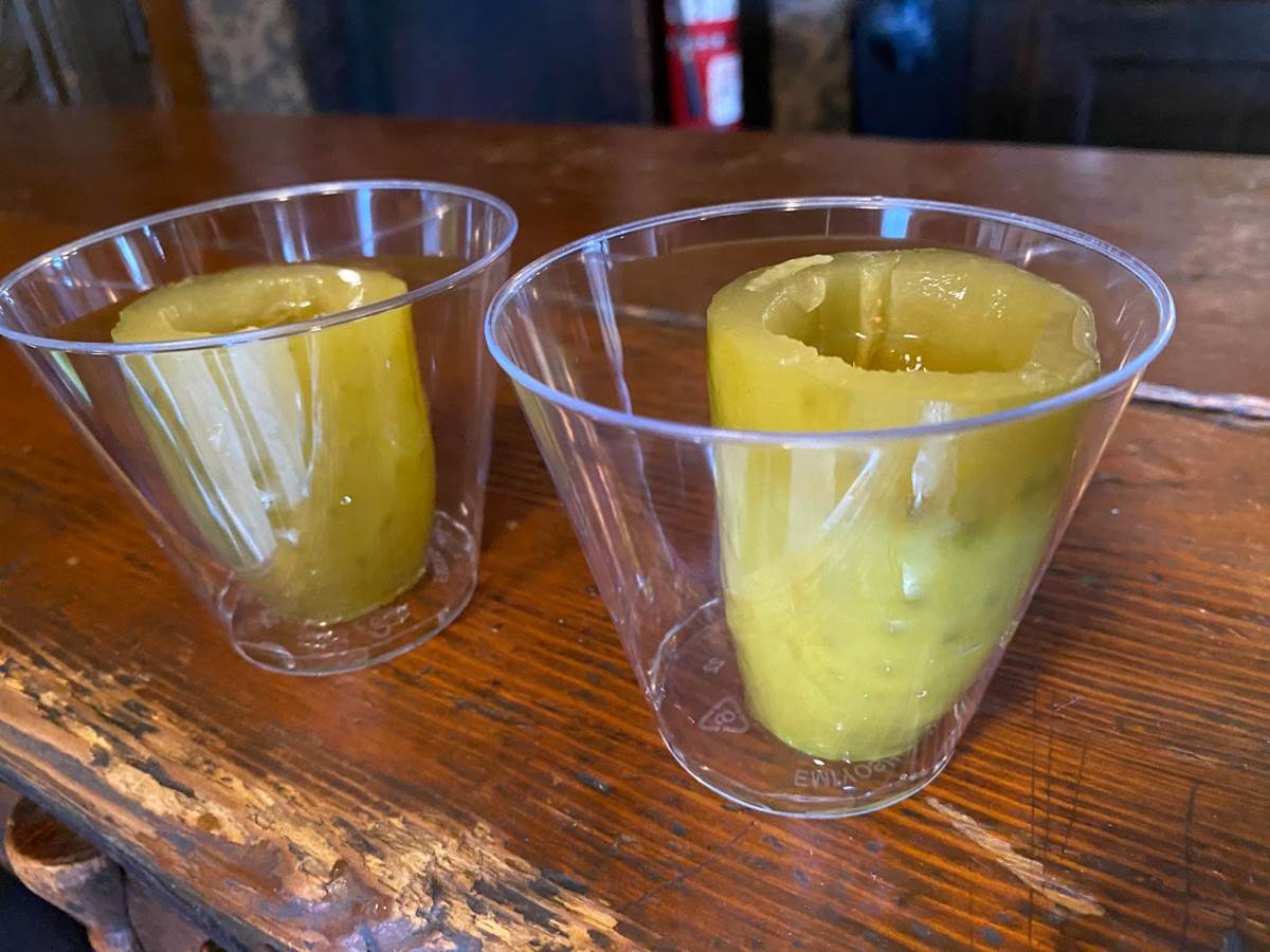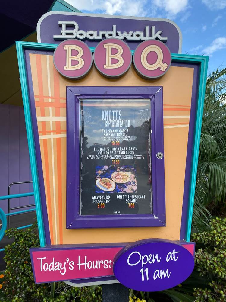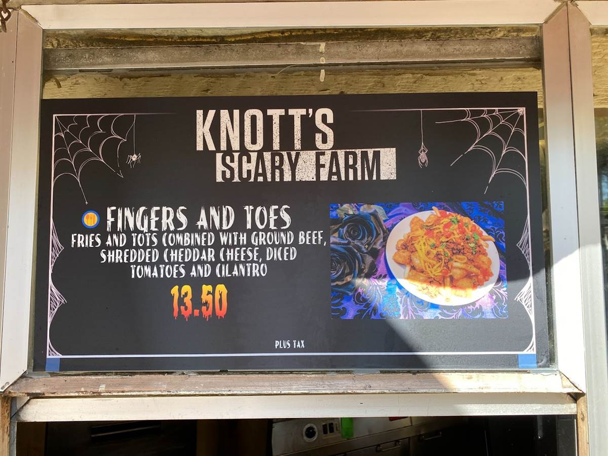 And no Knott’s seasonal event would be complete without specialty food offerings, many of which are available for both Knott’s Spooky Farm and Knott’s Scary Farm. We tried the Green Bean Fries, the Fingers and Toes (tater tots and french friends loaded with toppings), and an alcoholic adult beverage served in half of a pickle!