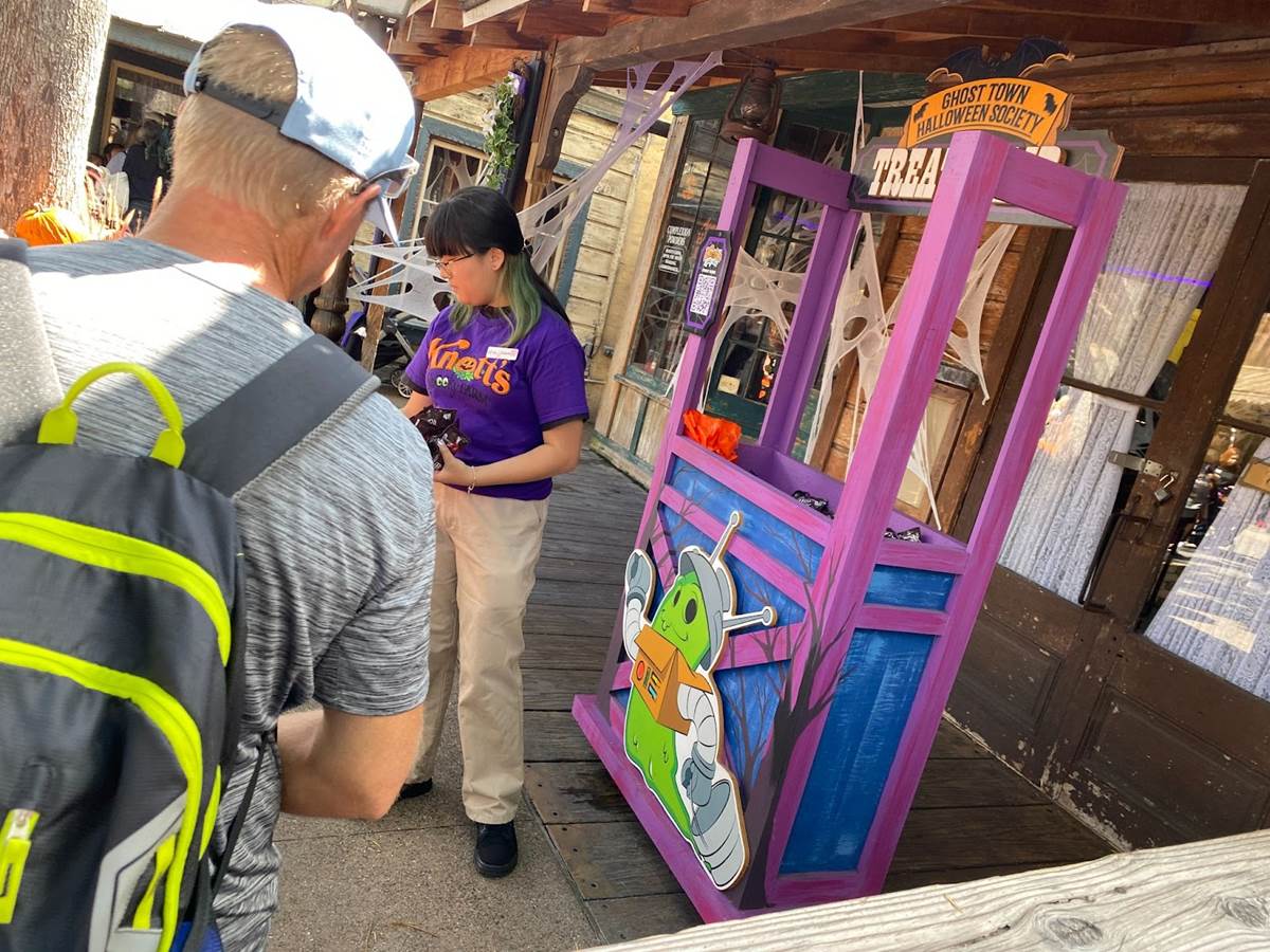 Two of the big draws of Knott’s Spooky Farm are the attraction overlays for the Timber Mountain Log Ride (which is transformed into the “Halloween Hootenanny" version for the season) and the Calico Mine Train, which becomes Calico Candy Mine Train. In the embedded video below, you can see a full ride-through of the latter attraction.