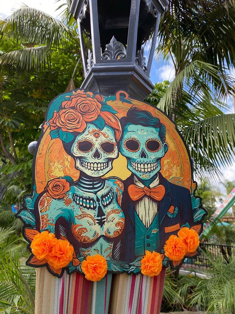 But in the newly remodeled Fiesta Village, guests will find an assortment of gorgeous-looking Dia de los Muertos decorations around the area.