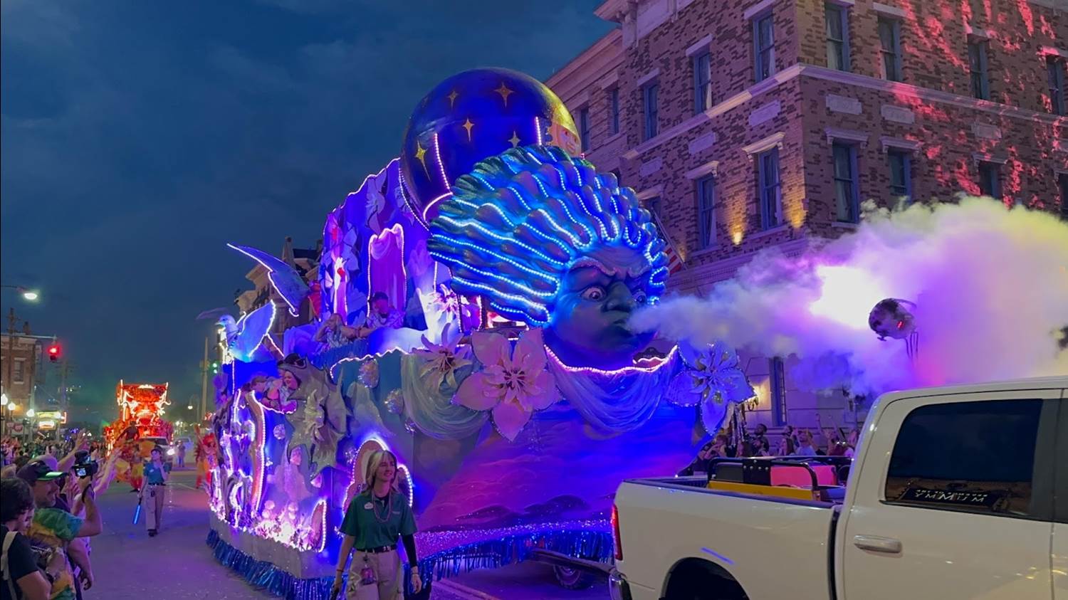 With the conclusion of the element section of the parade, a smiling sun and moon welcome us to New Orleans for the remainder of the parade.