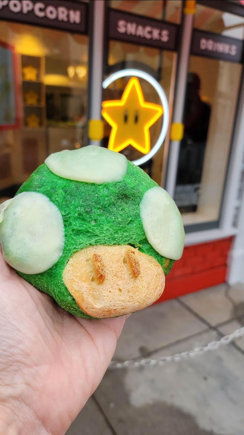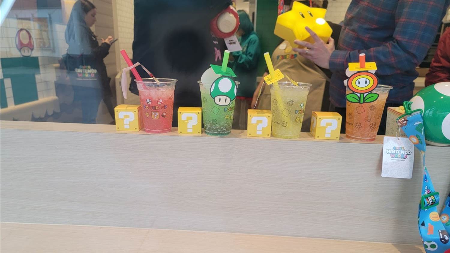 - 1-Up Mushroom Fizz: Lemon lime soda with green apple popping pearls and a lime 1-Up Mushroom Power Up