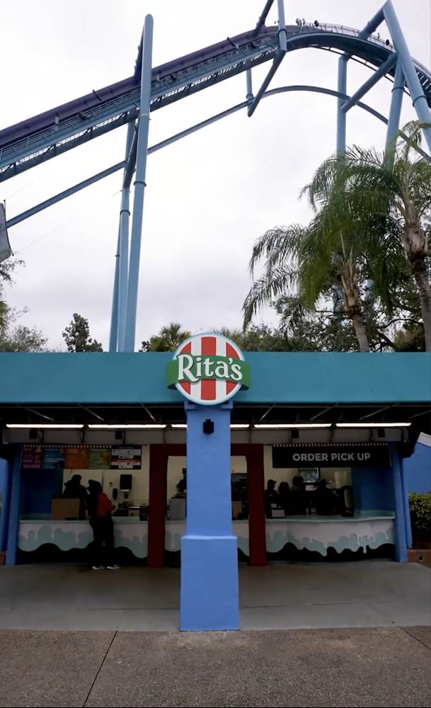 - Now, SeaWorld Orlando has become the latest location for Rita’s, opening up near the front of the park, underneath the lifthill of Manta.