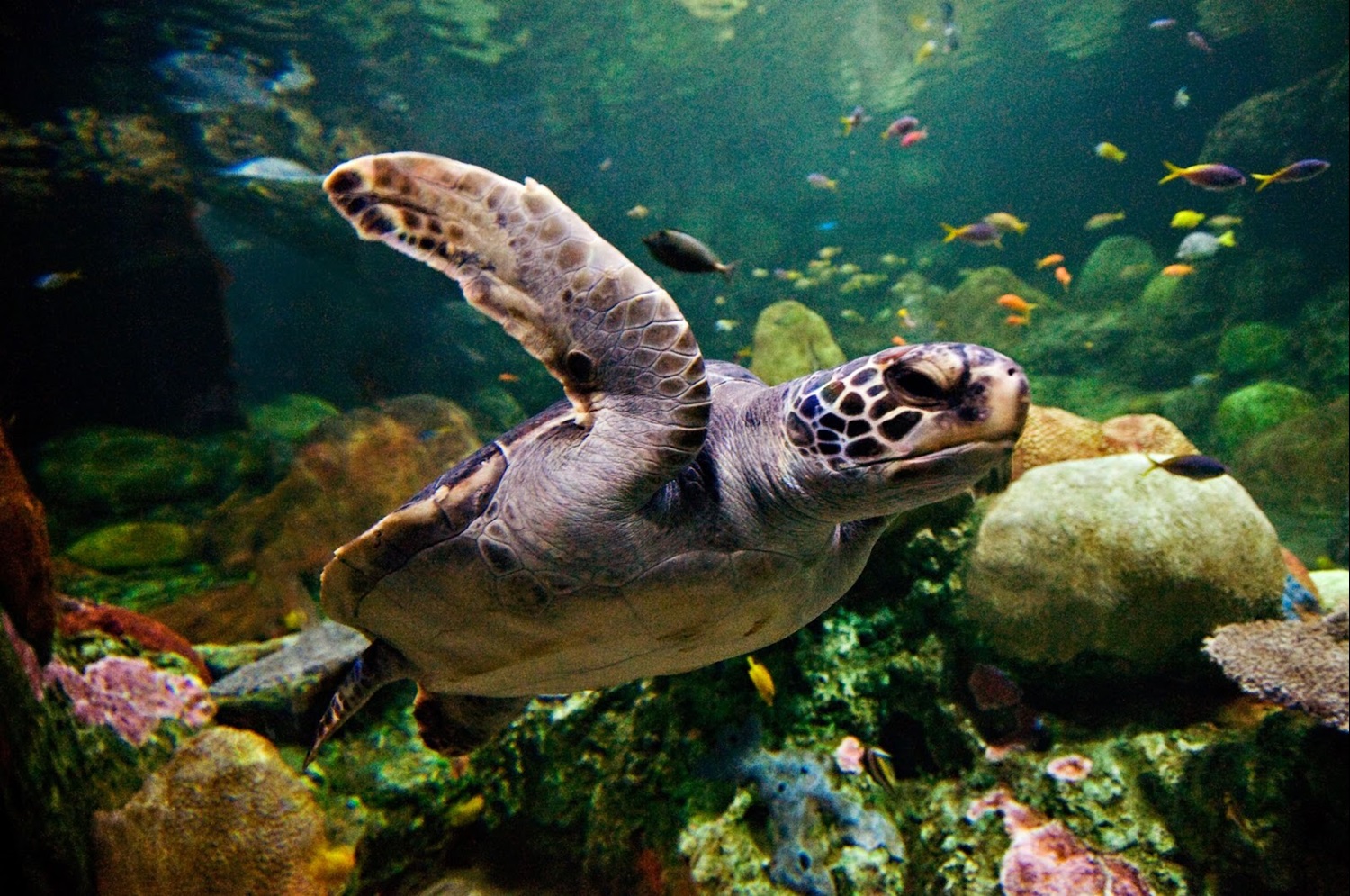 - Zoological scuba divers can be seen interacting with turtles in the reef, while educators provide information, respond to inquiries, and entertain guests with activities such as Rock-Paper-Scissors.