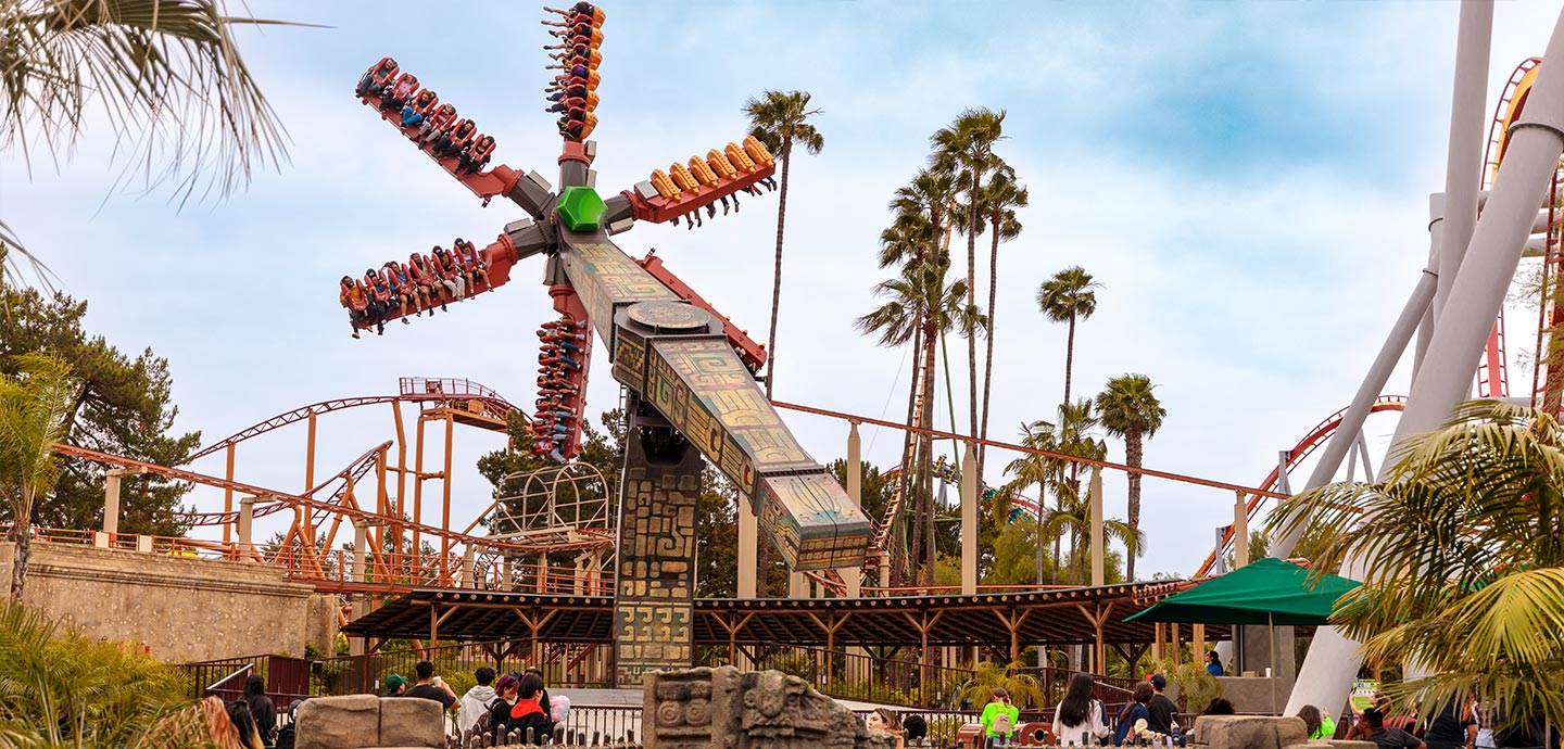 - Sol Spin, located in the Fiesta Village section of the park, is a Mondial Top Scan attraction that spins and flips riders up 6 stories in the air.