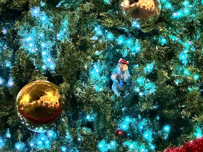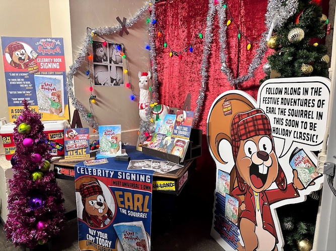 Over at Universal Studios Florida, the New York area of the park is decked out for the holiday season. With festive lighting, an enormous Christmas tree, and the Holiday Pop-Up Tribute Store, guests will be immersed into the spirit of the season. If you look close enough, you’ll find Earl the Squirrel hanging out inside the decorative tree.