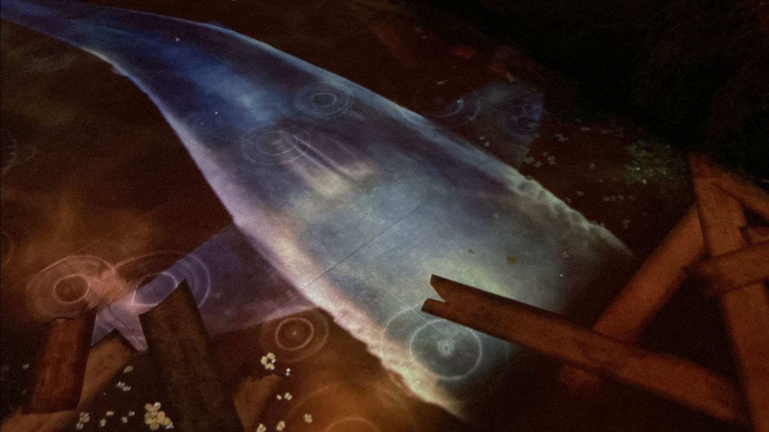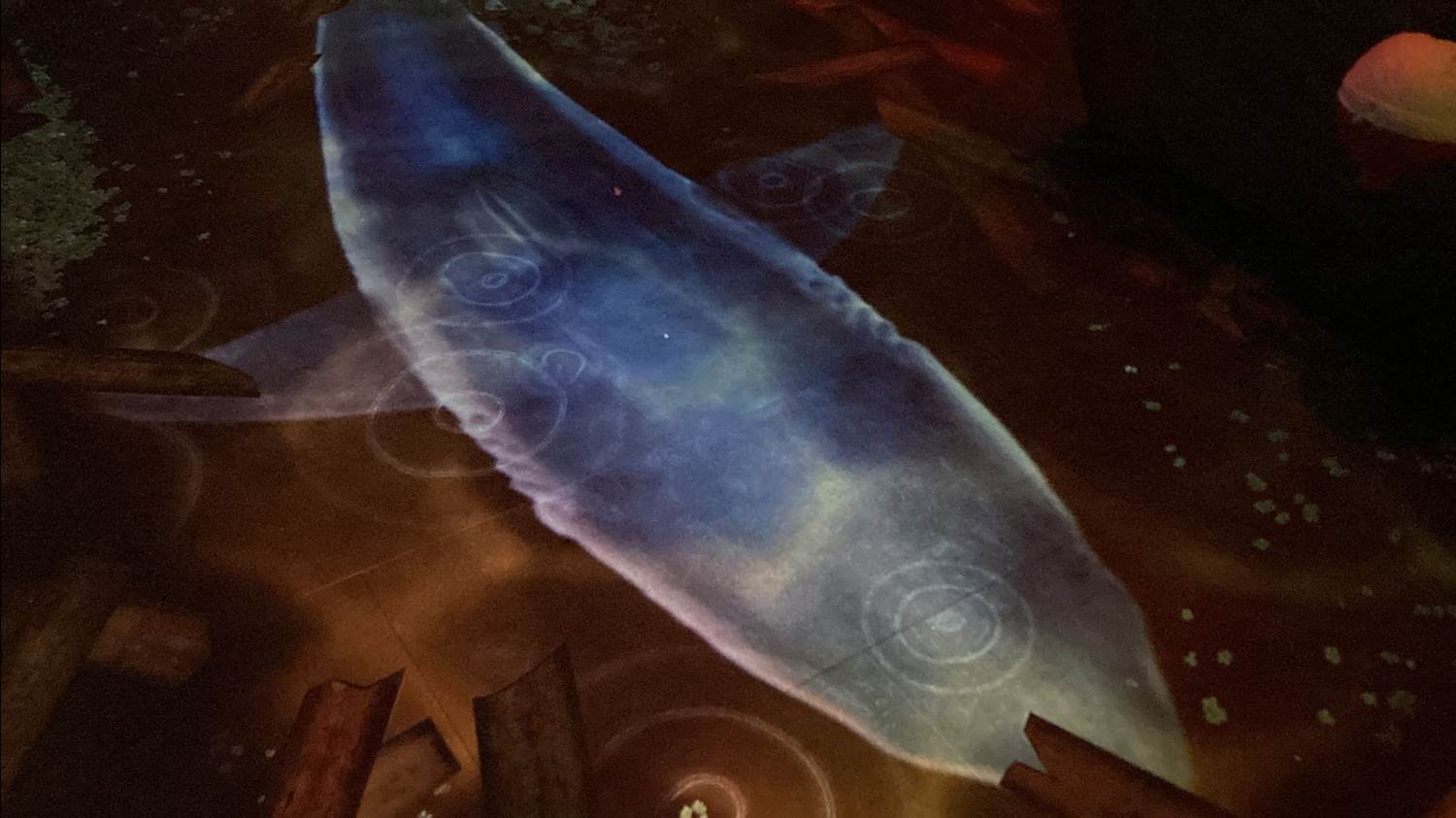 - In another room, themed to a sinking river boat, another new detail has been added. The room typically features projections of alligators swimming by on the floor, but now there is another creature patrolling those waters…