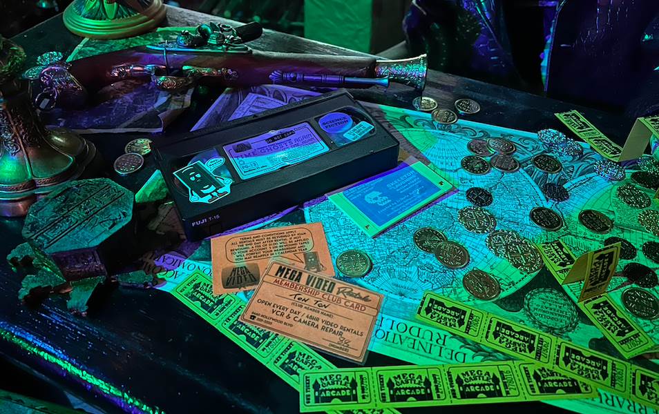 - In the final room of the store, in front of the skeleton pirate, guests will now find Mega Castle Arcade tickets and Mega Video Rentals membership club cards on the desk.