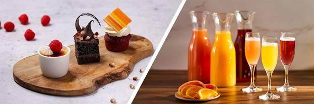 - Desserts include croissant bread pudding, mini red velvet cupcakes, dark chocolate flourless fudge cake, dulce de leche cheesecake and more.