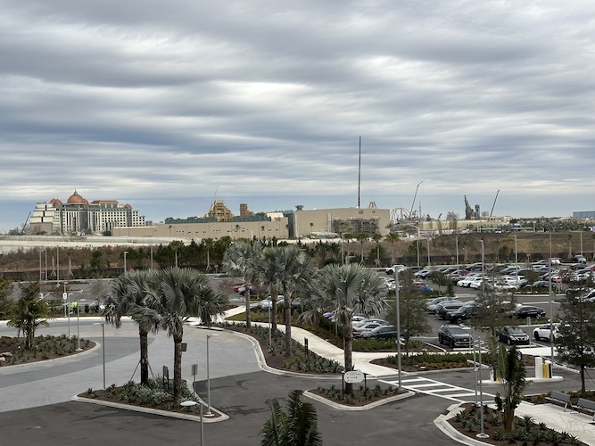 Those staying in select rooms will have a view of Universal Epic Universe, as well as another hotel towering over the skyline - Universal Helios Grand Hotel.