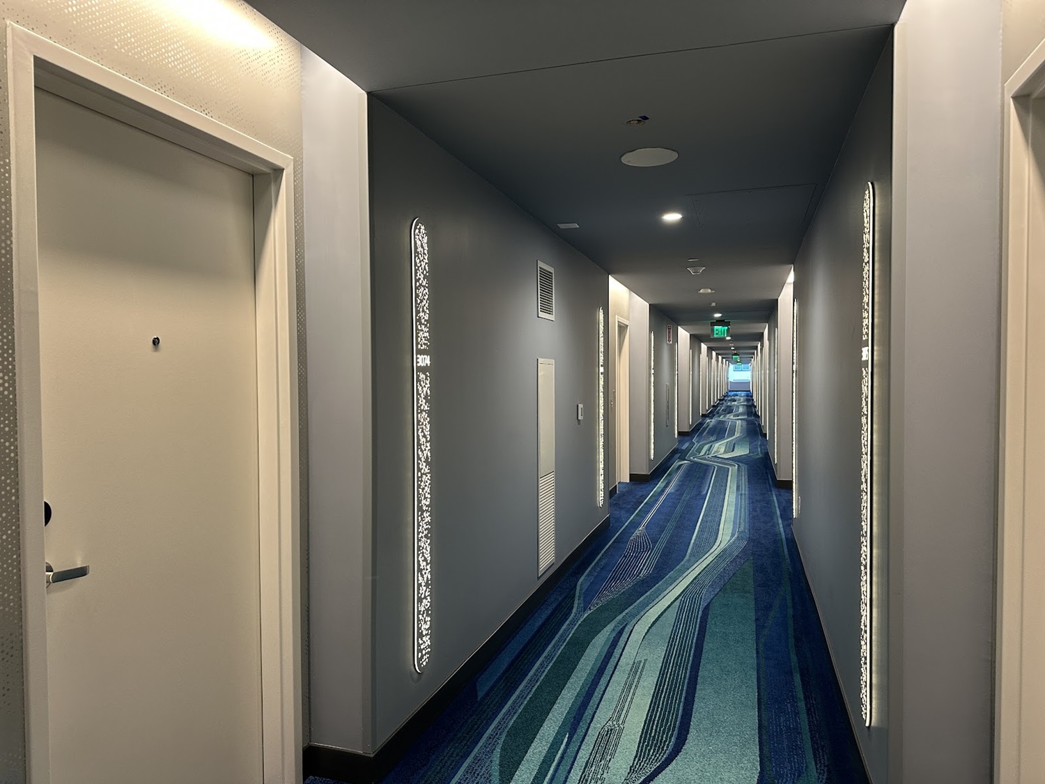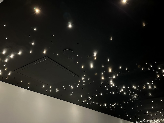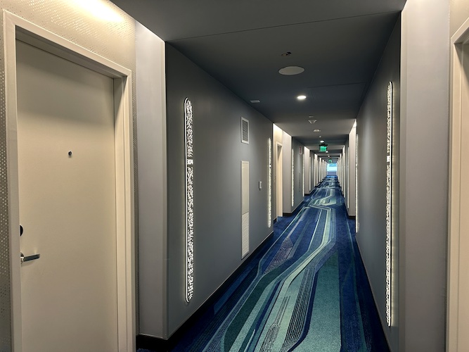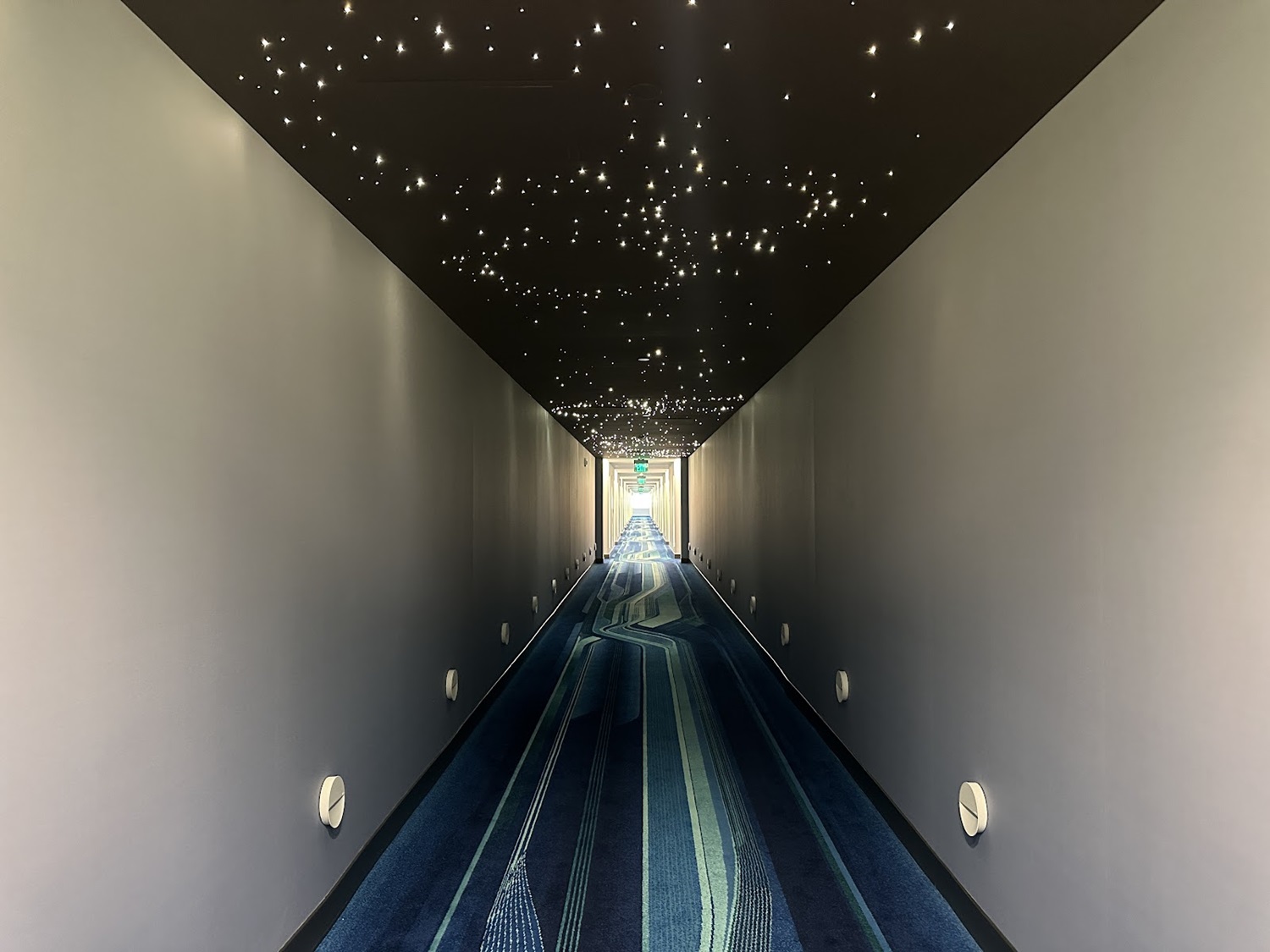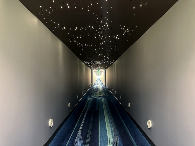 Out in the hallway, special lighting effects bring the galaxy to life above guests as they walk to their room.