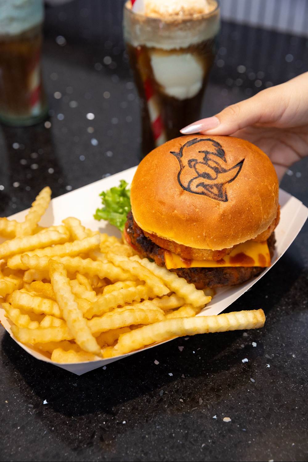 - Mel’s Diner, also located on the Upper Lot, will feature such favorites as Mel’s Classic Burger, Beyond Meat BBQ Cheeseburger, Chili Cheese Dog, Tuna Melt, Chicken Caesar Salad, as well as two entrees that harken back to iconic mid-century TV dinner style platters: the Meatloaf Combo and Fried Chicken Combo.