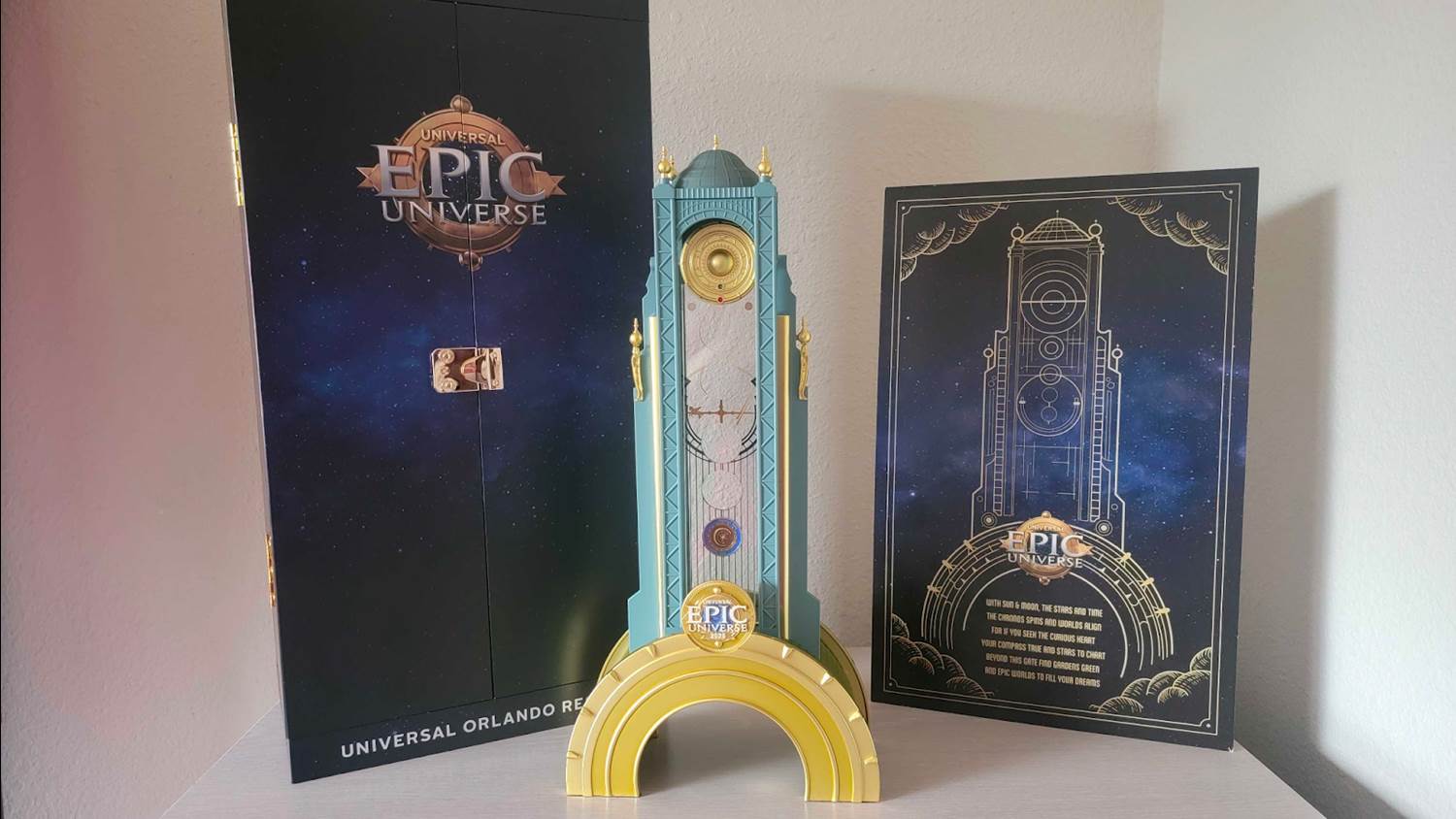 We received a model of the Chronos, which will serve as the gateway into all the realms of Epic Universe at the entrance to the park. Also included is a medallion marking our first destination, Celestial Park, the “hub" of the park. More medallions will arrive in the months to come, which will also be contained on the Chronos. These will likely represent the other areas of the park, such as Super Nintendo World and Dark Universe.