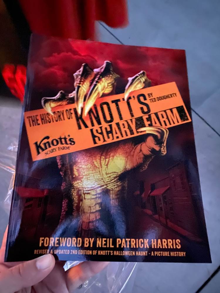 My one minor nitpick with Knott’s Scary Farm 2023 is the Interactive Lantern, which sells for about $40… my wife and I picked one up at the preview event a few weeks ago. Advertised as having 100 different activations throughout the park, I would say we were a bit disappointed with the reality of this technology. The lantern did change color in a few mazes and scare zones, but otherwise seemed to be doing very little. But we’ll be going back to Scary Farm in a couple weeks with friends and I’ll be sure to bring the lantern along again to see if the Knott’s creative team has gotten the bugs worked out. Fortunately I was quite happy with my purchase of the Knott’s Scary Farm 50th anniversary history book by Ted Dougherty– available now at the park.