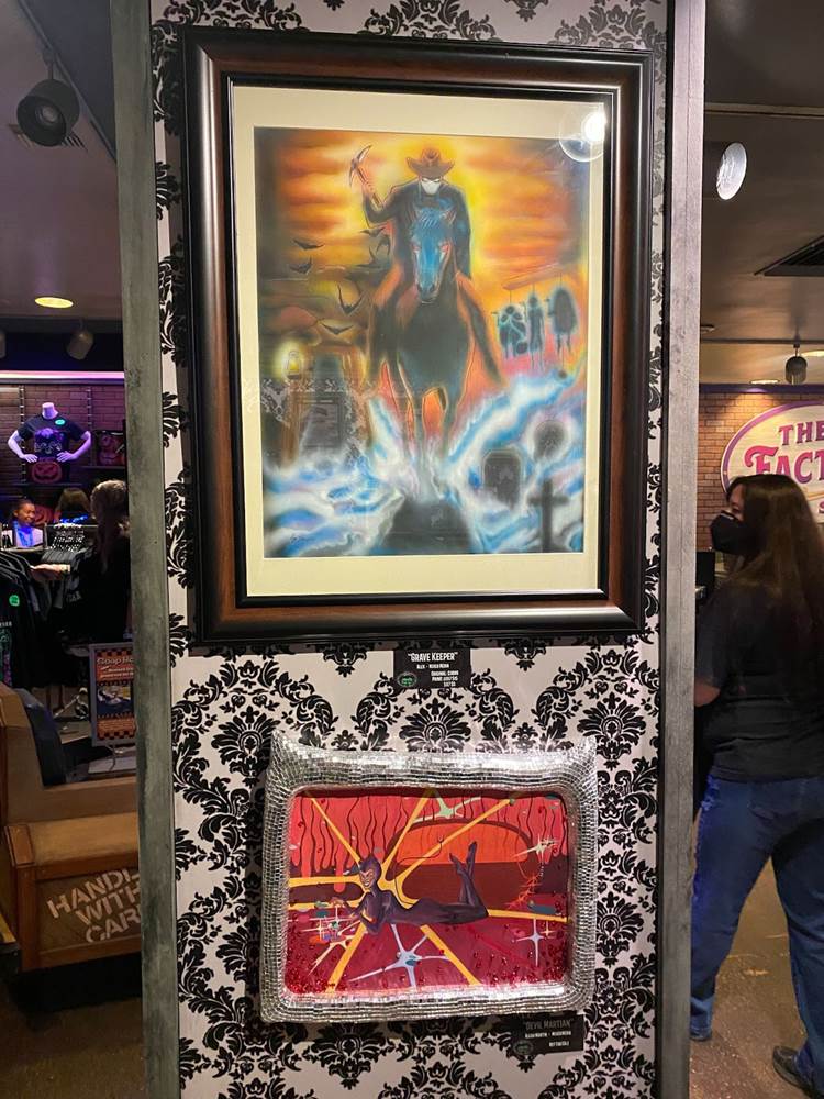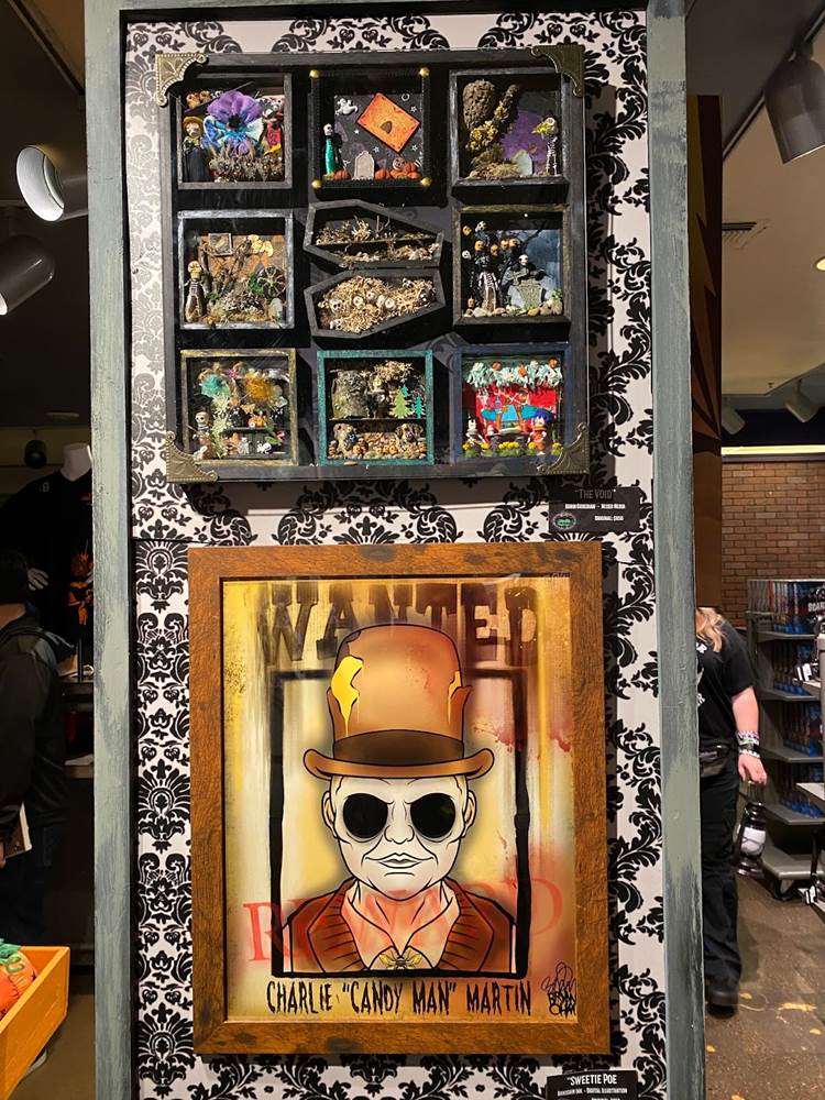 Over in the Factory Store gift shop, guests can peruse the “Into the Fog" art show, which celebrates 50 years of Knott’s Scary Farm via some very cool artwork contributed by fans.