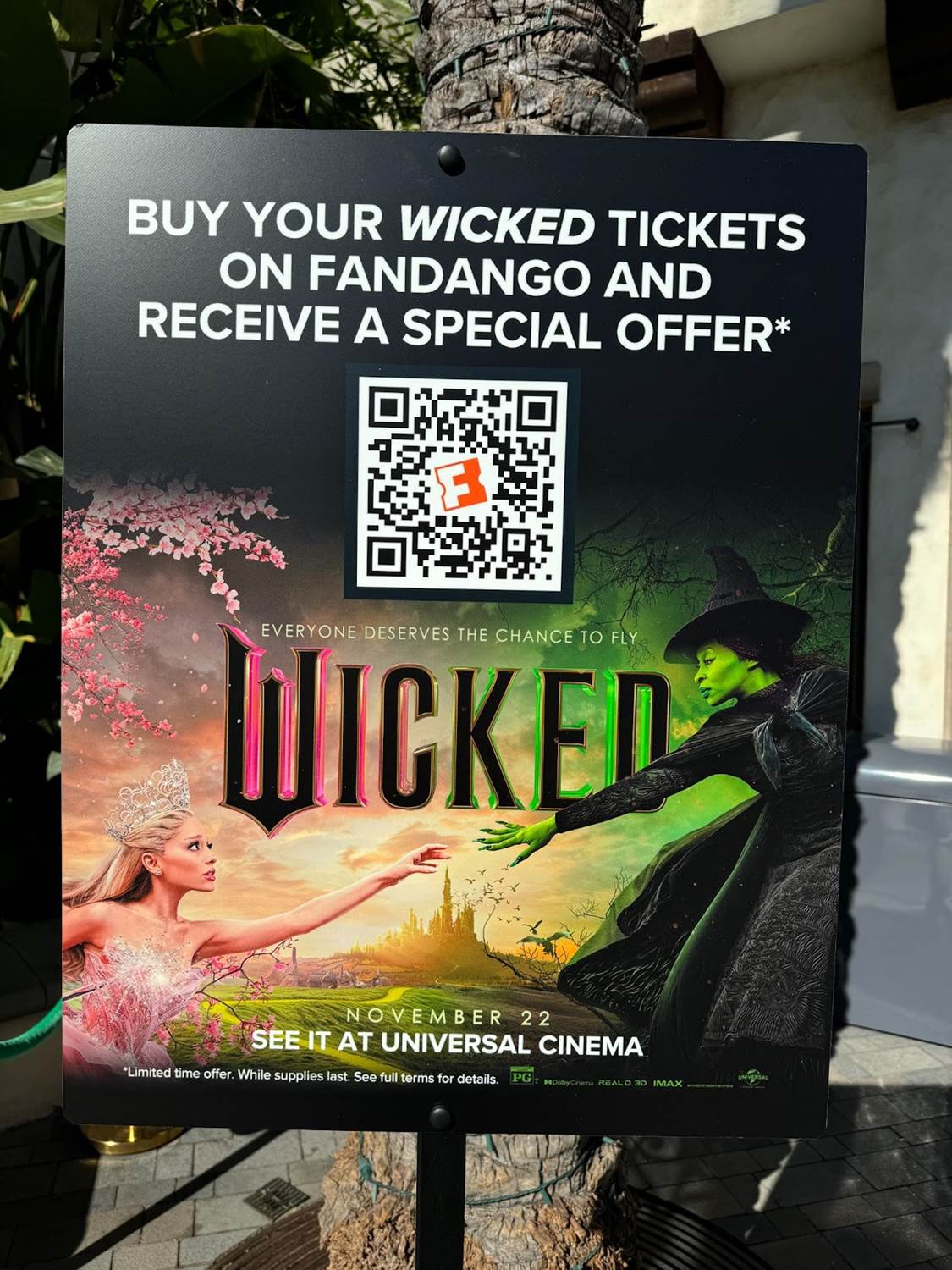 And before you leave Universal Studios Hollywood, don’t forget to stop by the Wicked photo op located near the park entrance. There’s also a QR code you can scan for a special offer from Frandango.