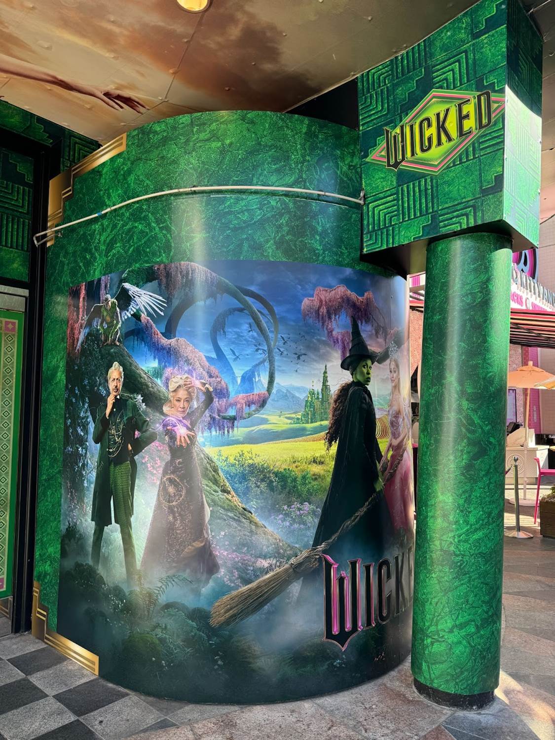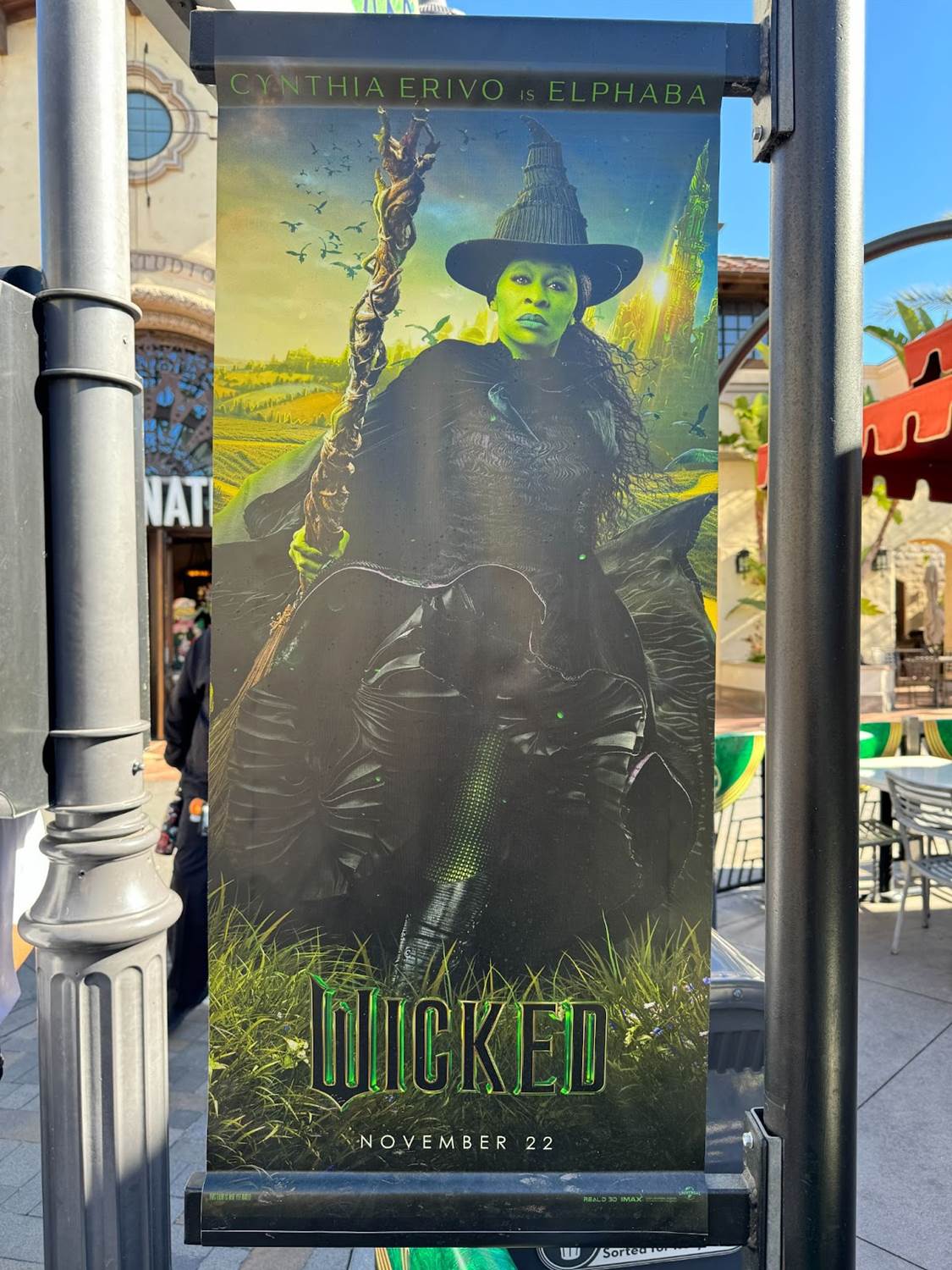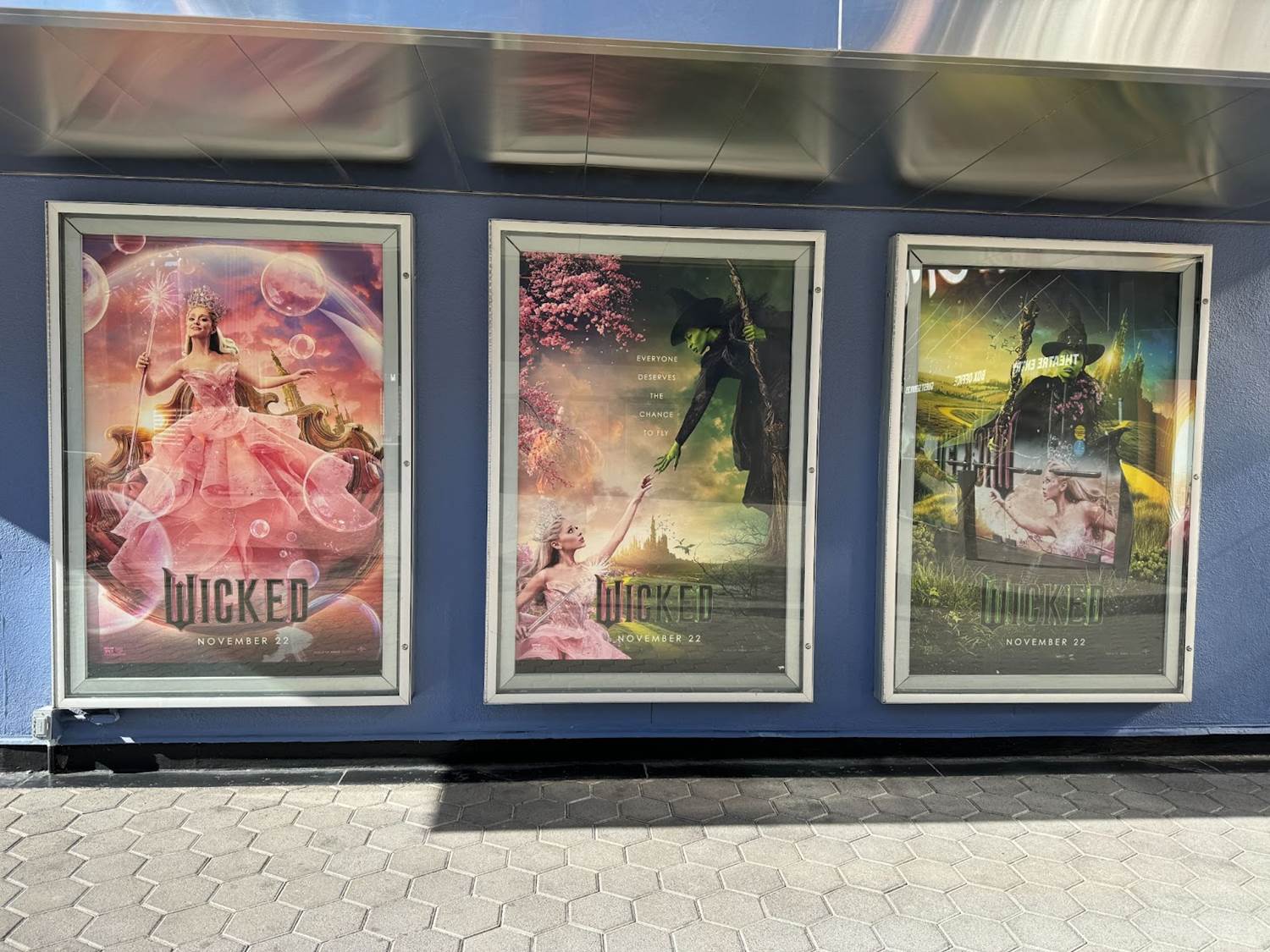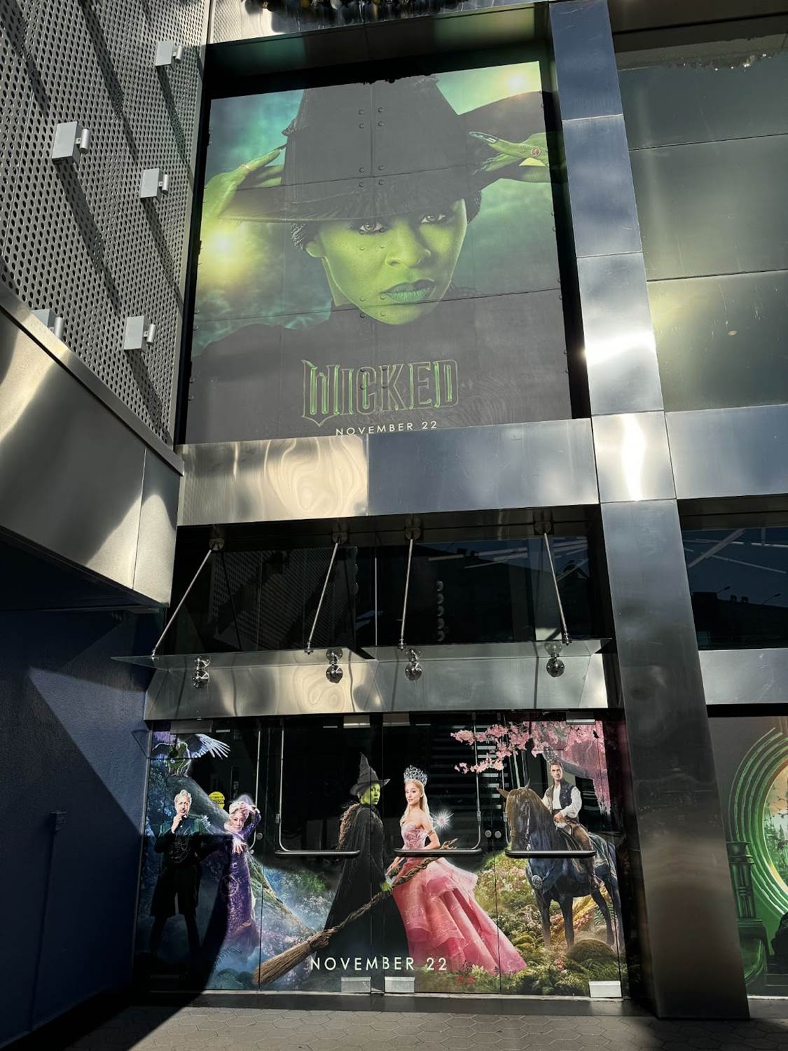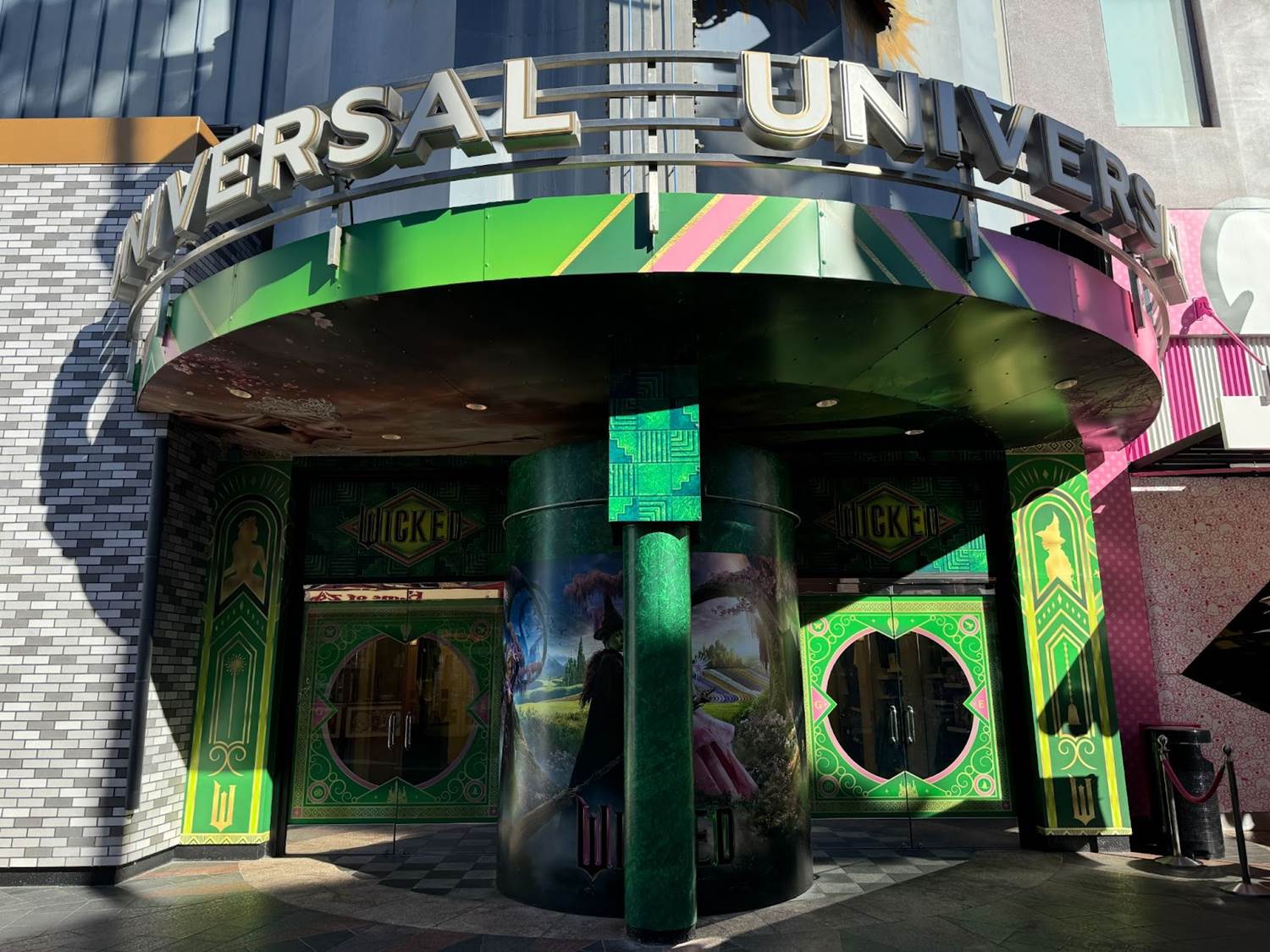 One of the first things guests might notice upon entering CityWalk is that the AMC Universal Cinema is decked out in Wicked’s key art all over its entrance.