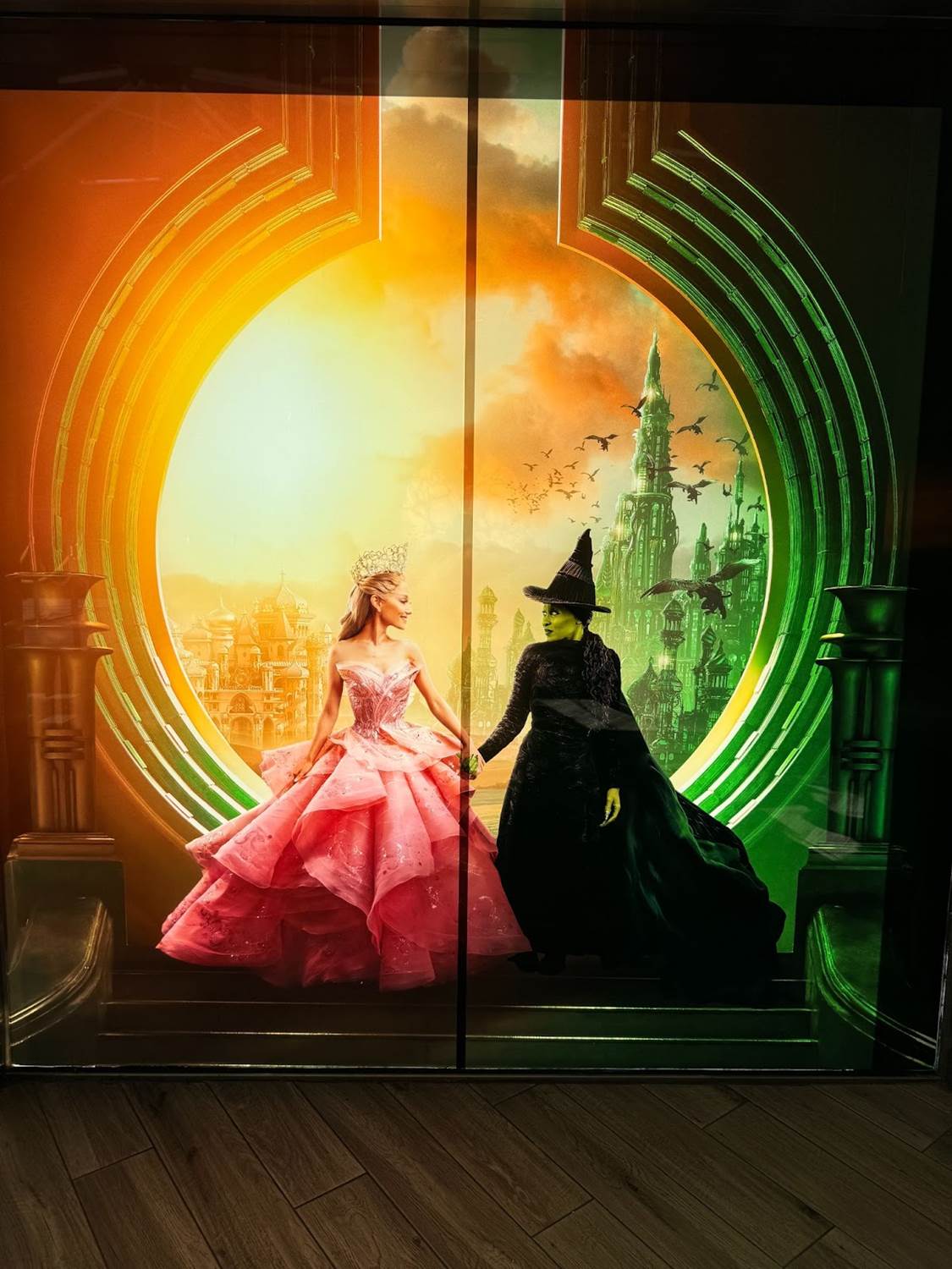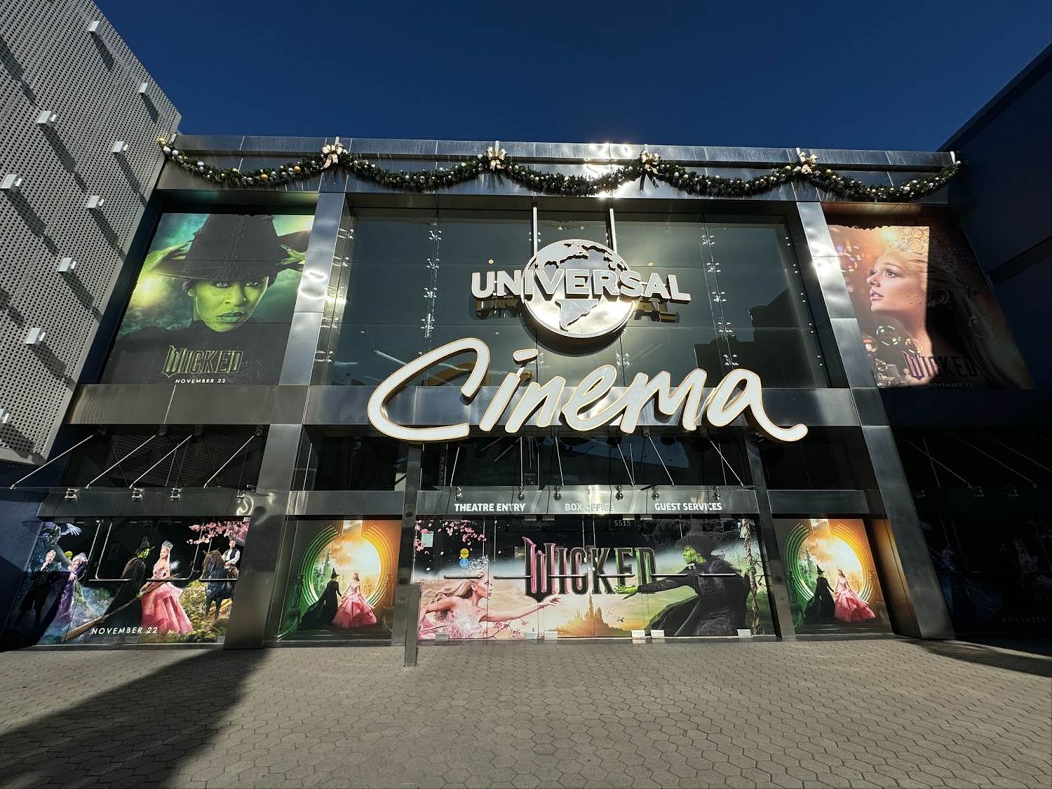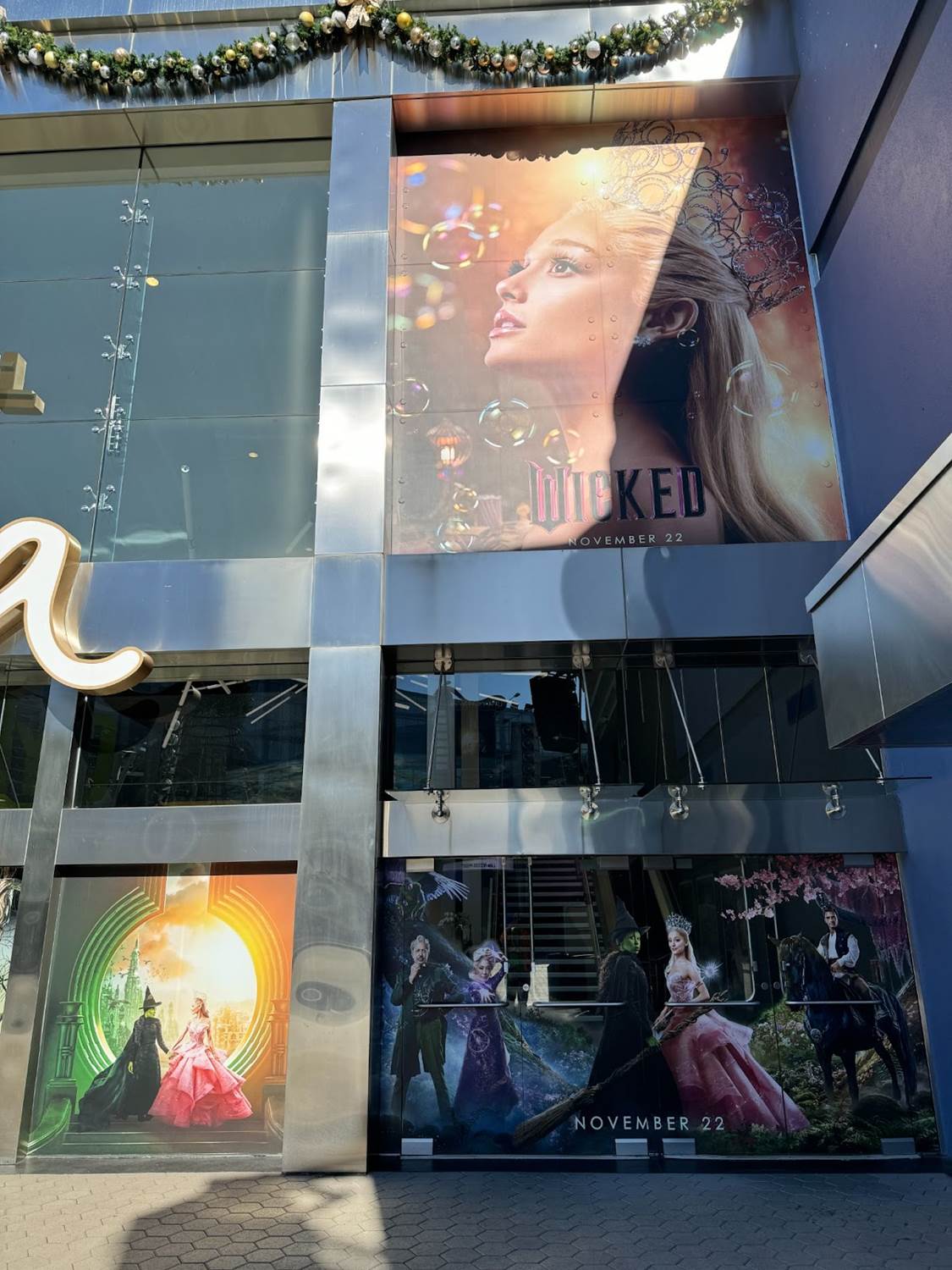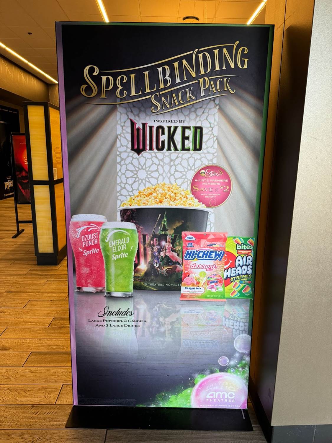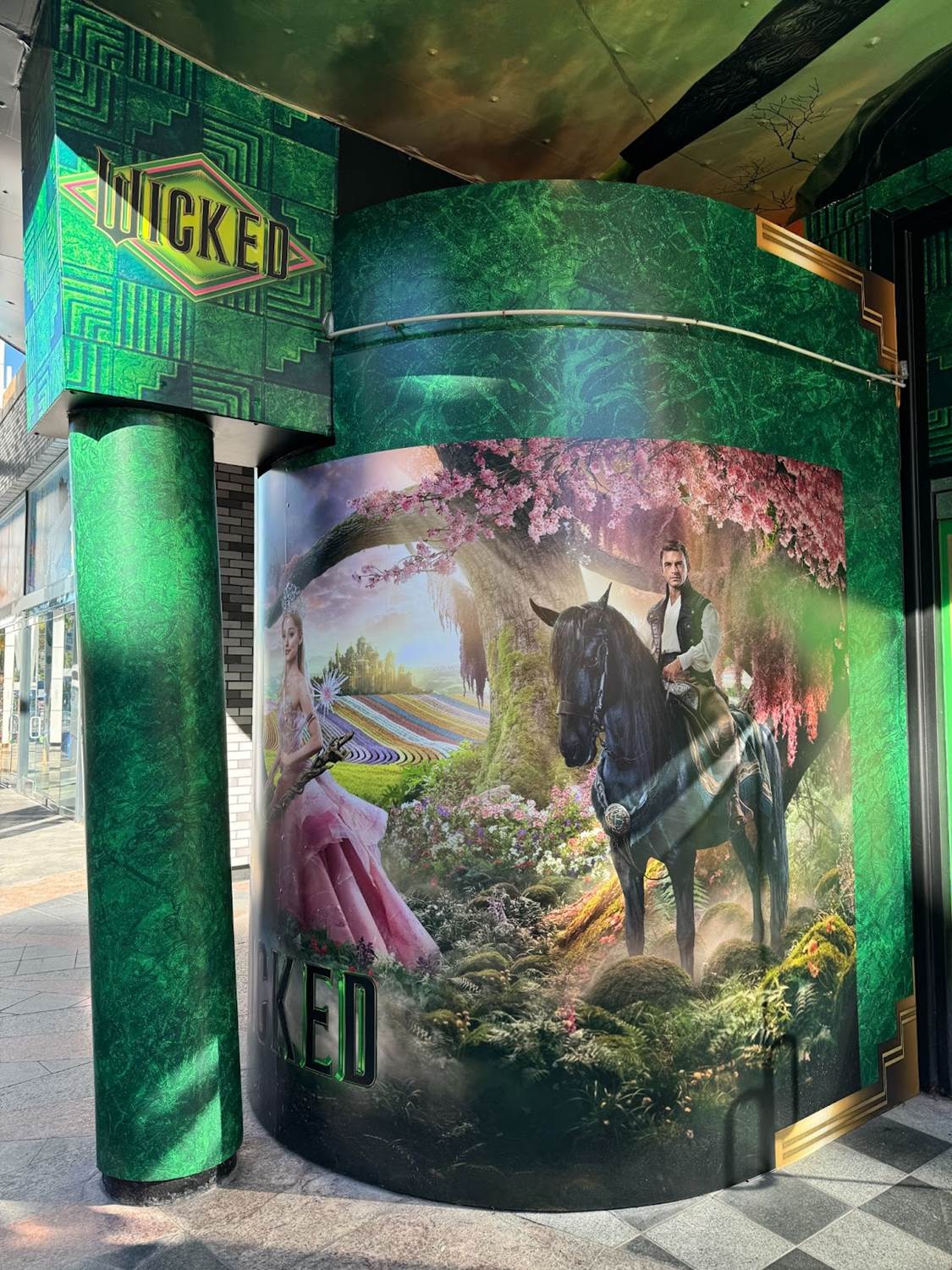 One of the first things guests might notice upon entering CityWalk is that the AMC Universal Cinema is decked out in Wicked’s key art all over its entrance.
