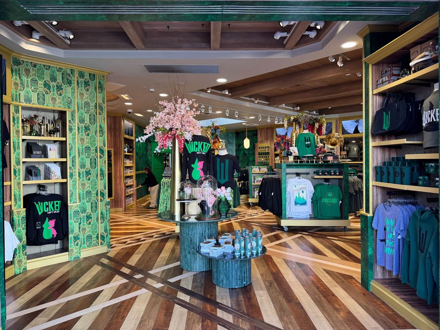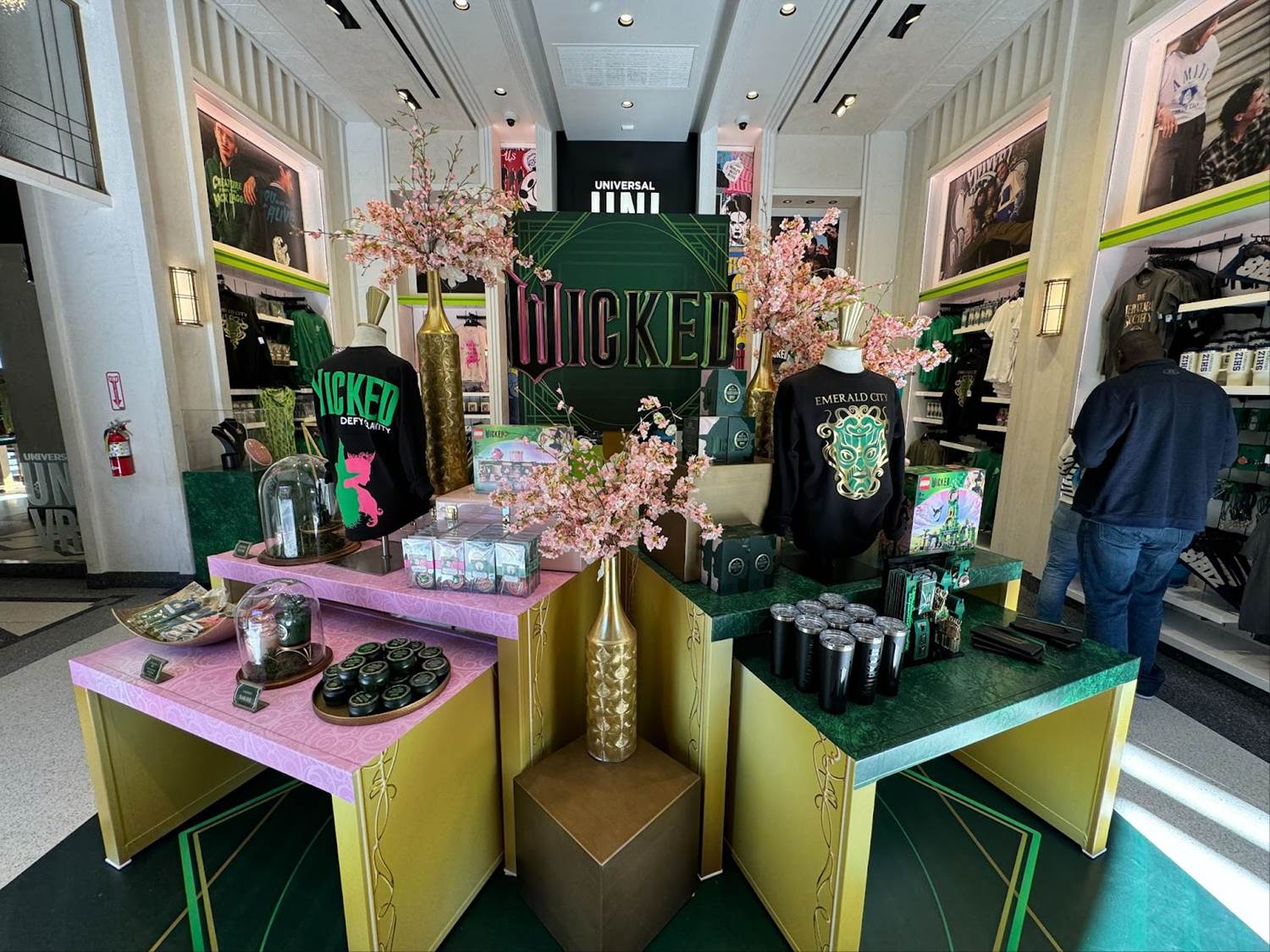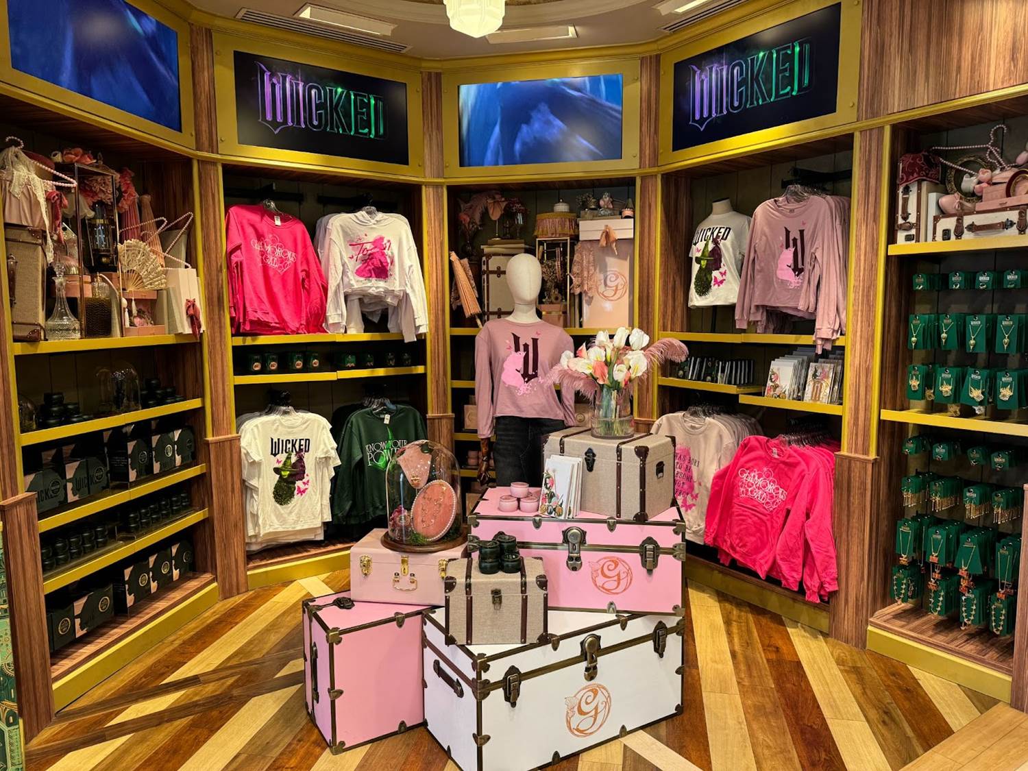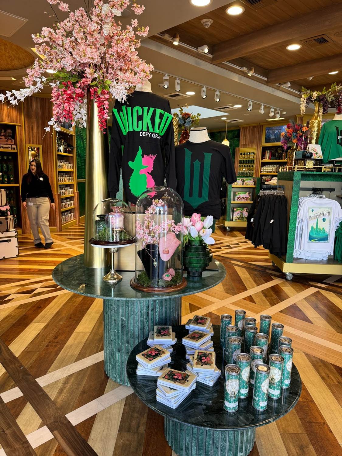 Next door in the Feature Presentation Store, guests will find a wide variety of Wicked merchandise, plus displays of actual props from the film.