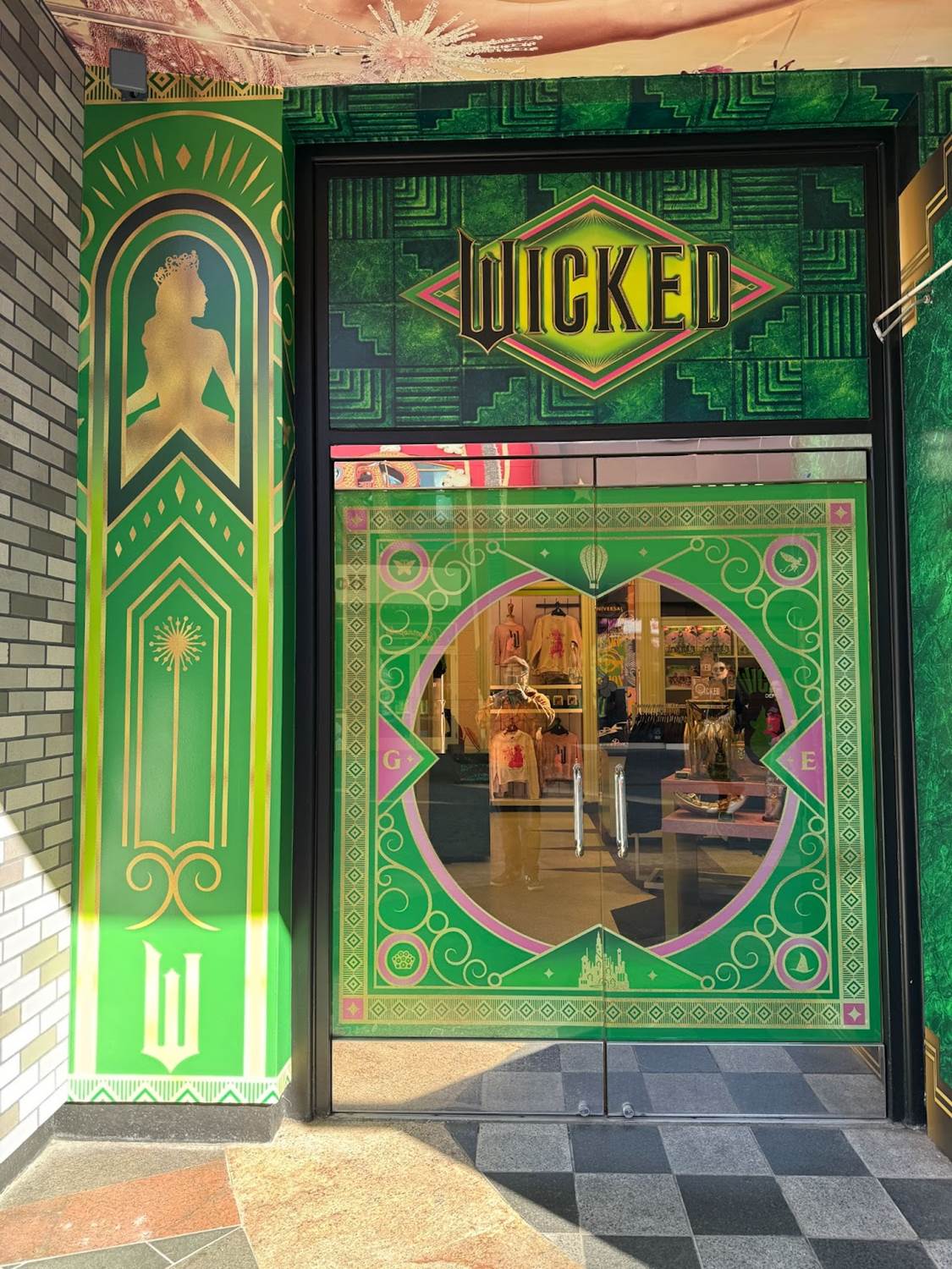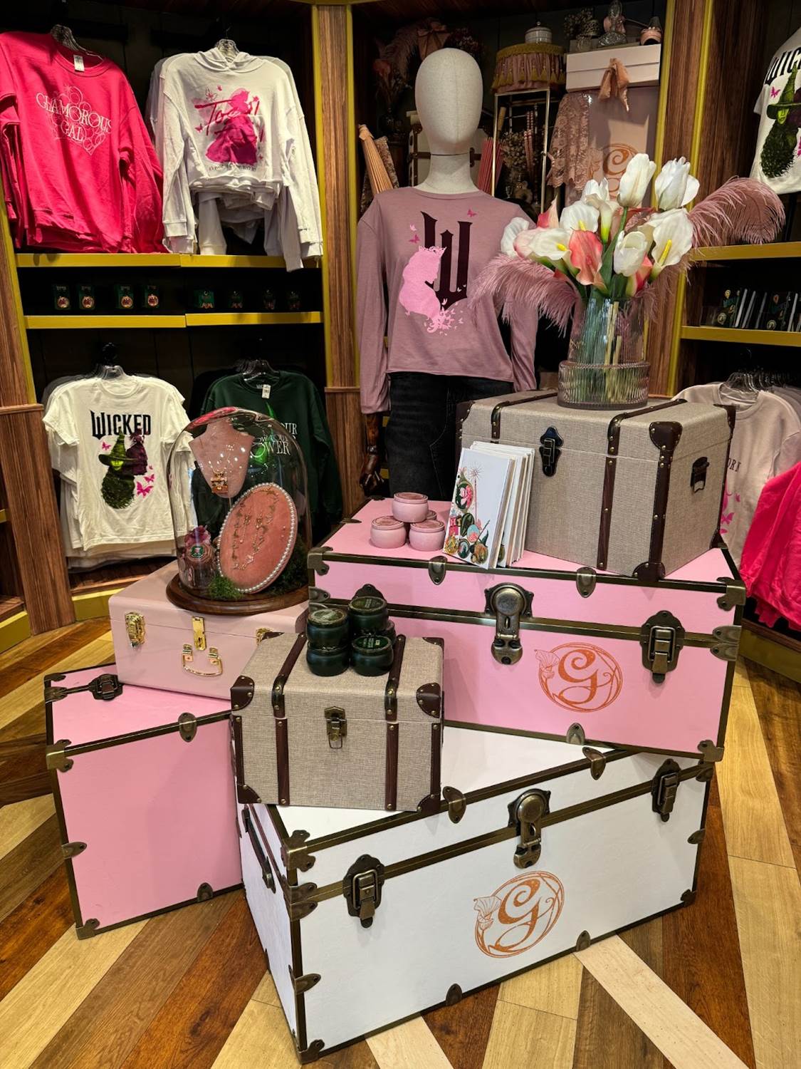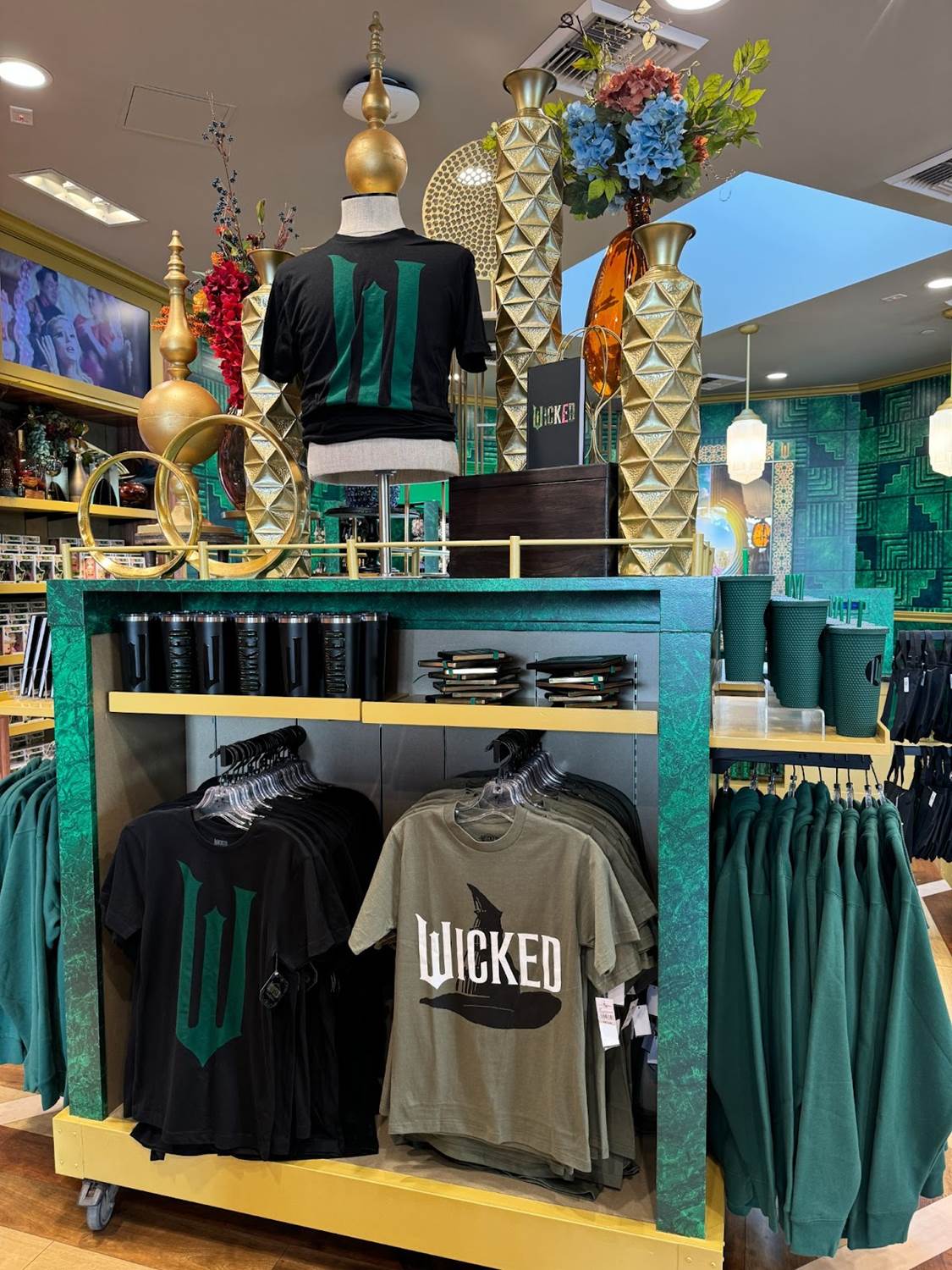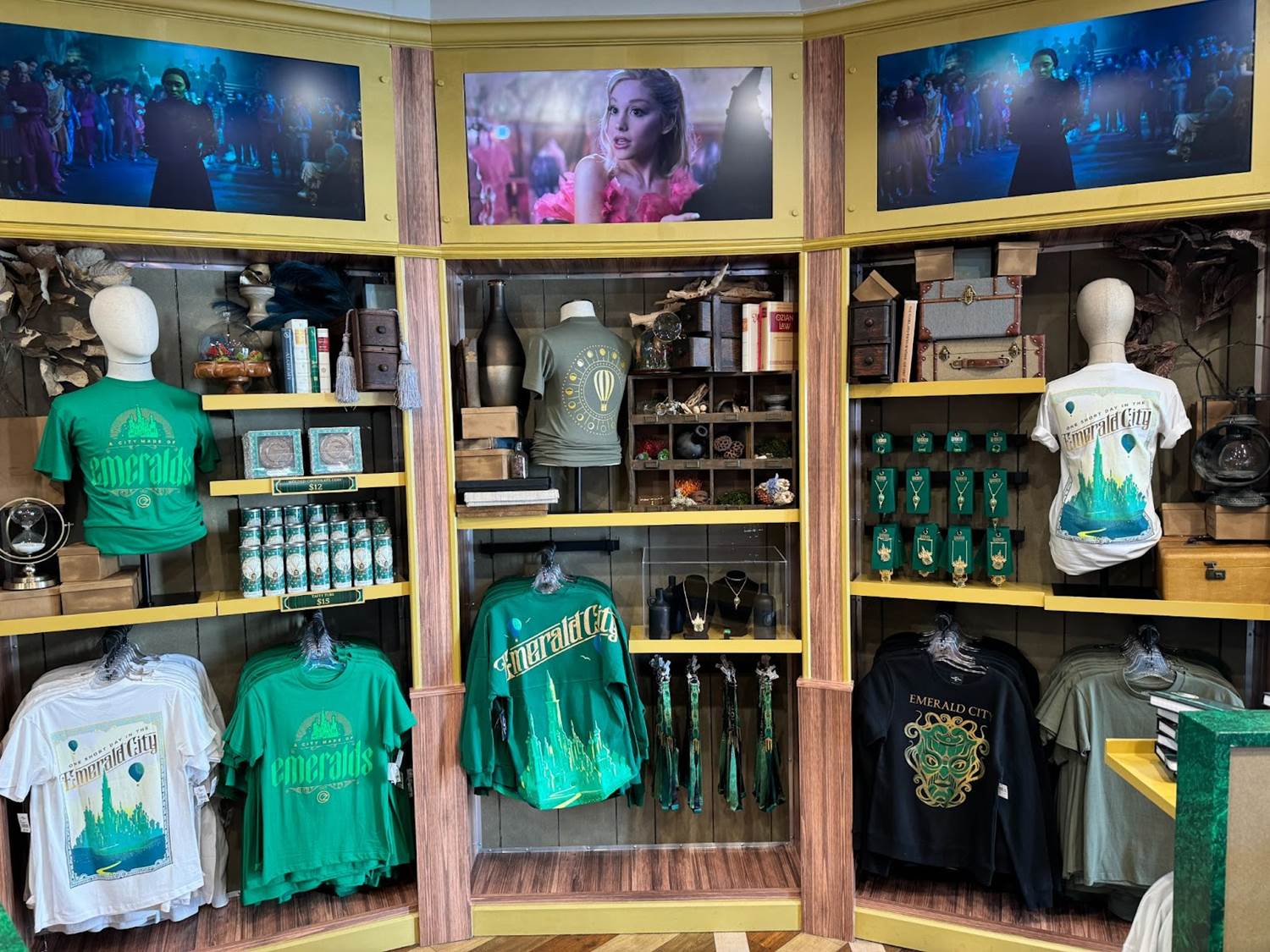 Next door in the Feature Presentation Store, guests will find a wide variety of Wicked merchandise, plus displays of actual props from the film.