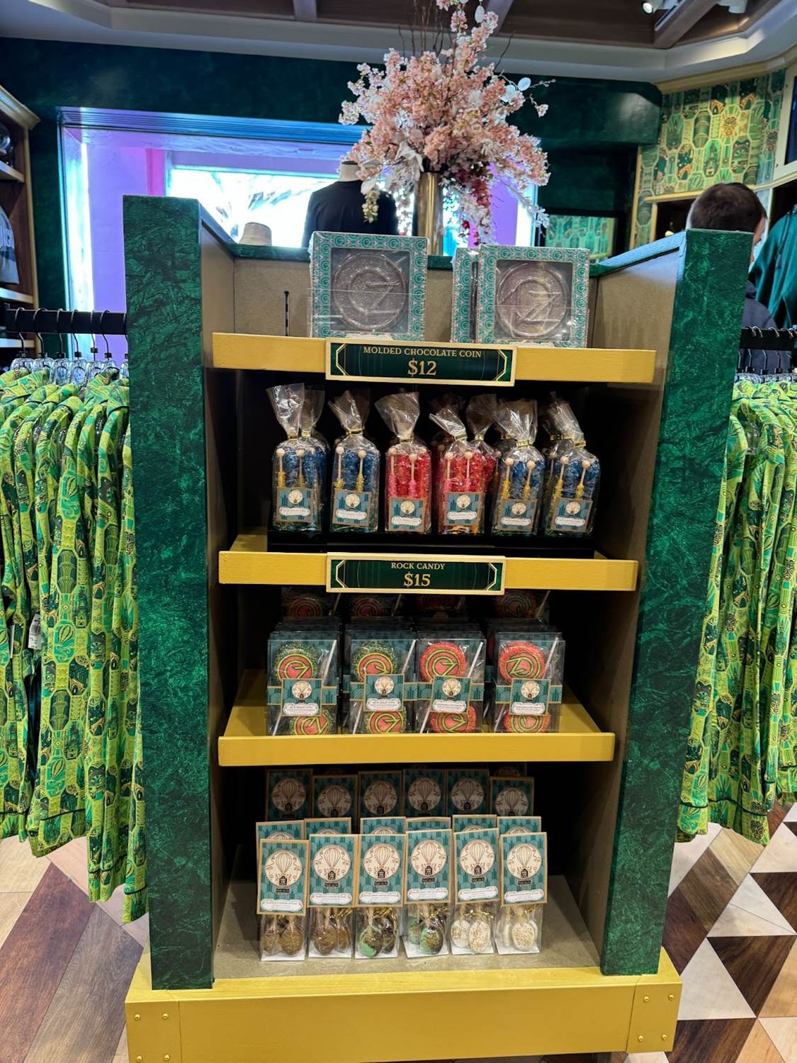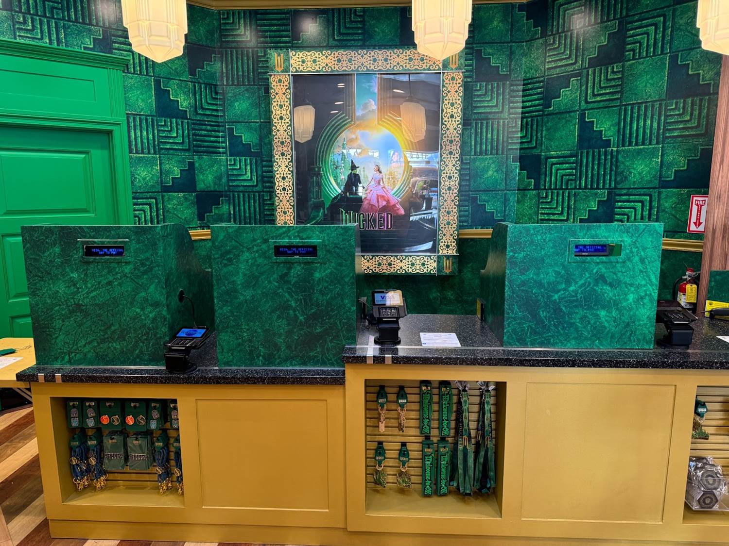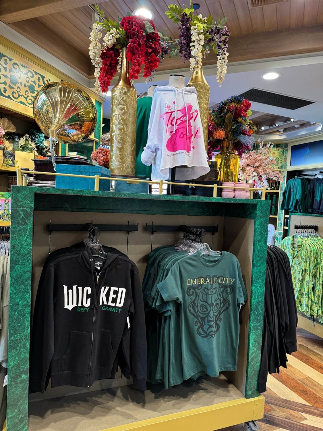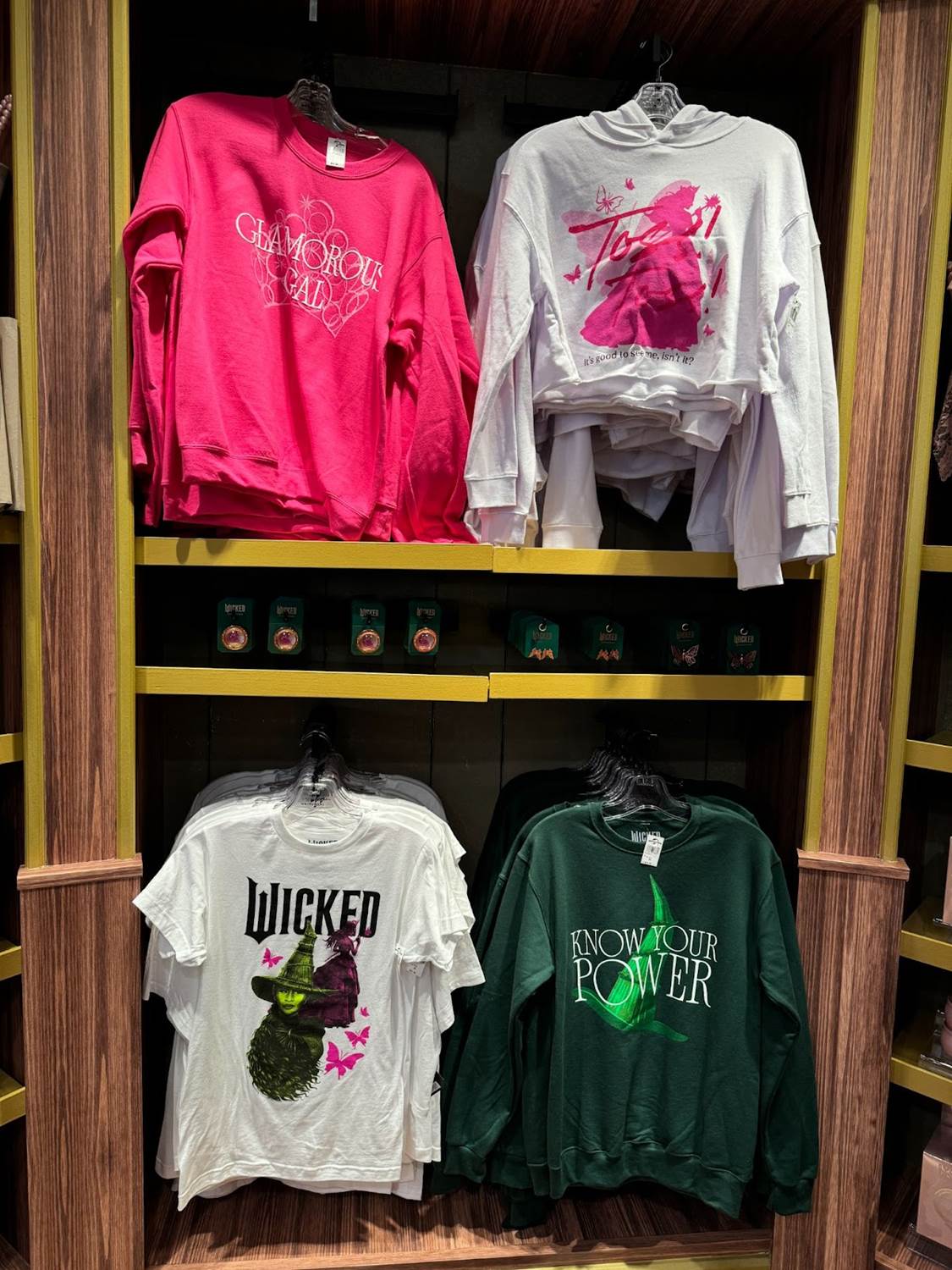 Next door in the Feature Presentation Store, guests will find a wide variety of Wicked merchandise, plus displays of actual props from the film.
